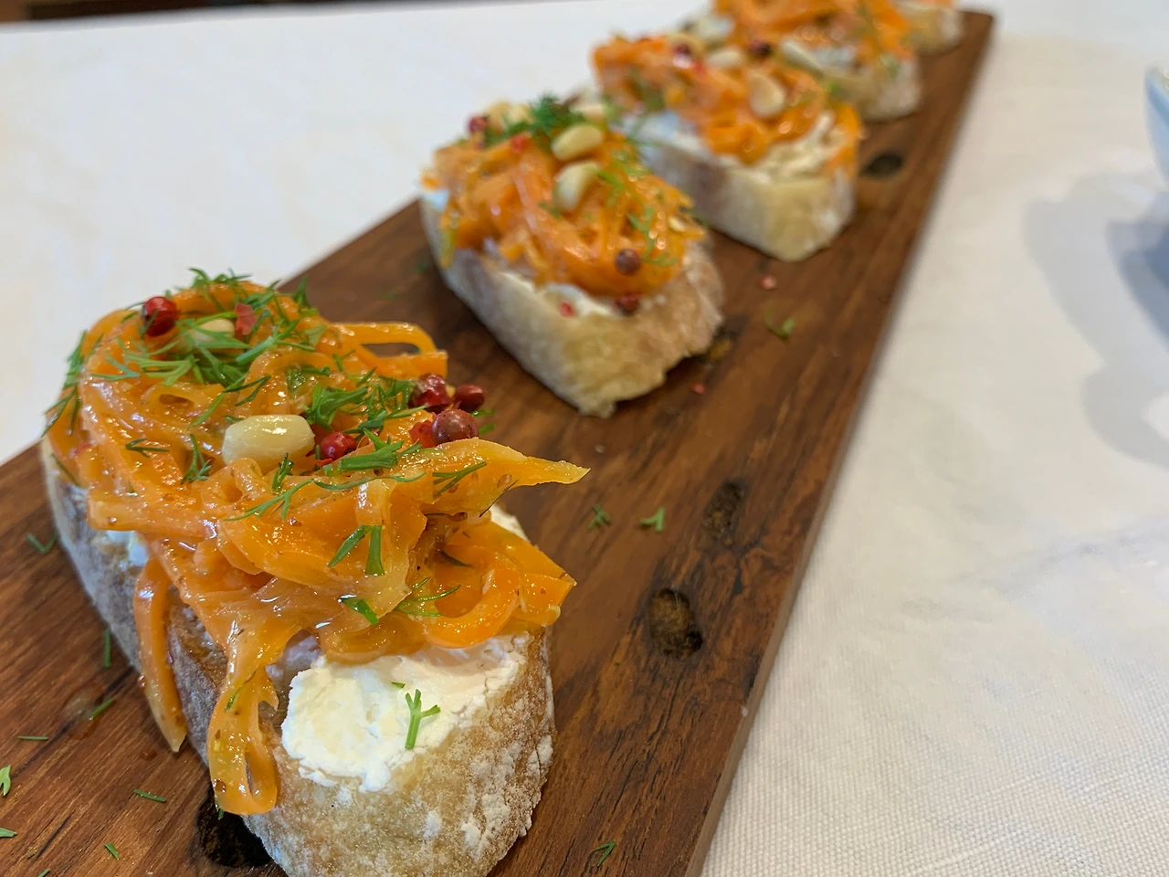 코스는 당근 라페로 시작했다. 요즘 다이어트 음식으로 가벼운 술안주로 그리고 샌드위치용 음식으로 인기를 모으는, 우리식으로 굳이 말하면 당근 초절임이라 할 수 있는 당근 라페를 잼까지 추가해 제대로 배웠다. 잘 구운 바게트에 크림치즈를 바르고 당근 라페를 얹어 먹어보시길 꼭 권한다.