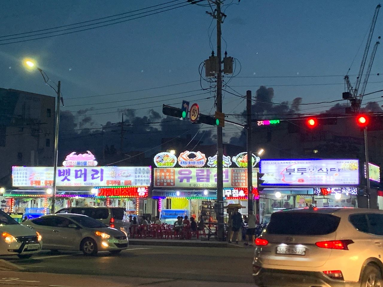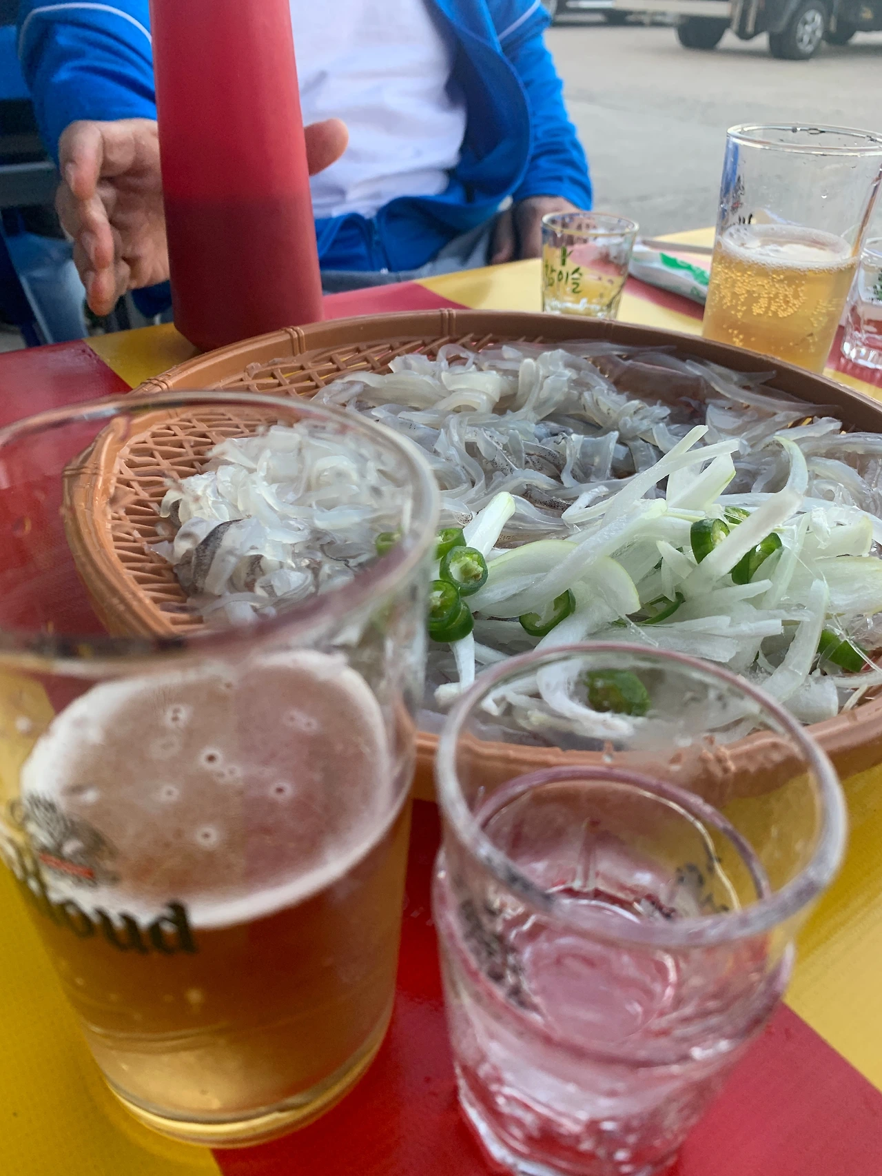 숙소에 체크인을 하고 먼저 동명항 오징어 난전에 가서 오징어회와 찜 그리고 쏘맥으로 시작했다.