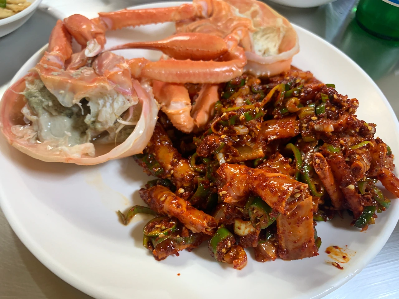 그리고 길 건너 유람선이란 음식점에 와서 내 인생 처음으로 홍게무침이란 것을 먹었다. 몸통은 찌고 다리는 생으로 잘라 양념을 한 음식였는데 쏙쏙 살을 빼먹고 양념을 빨아먹는 재미가 좋았다.