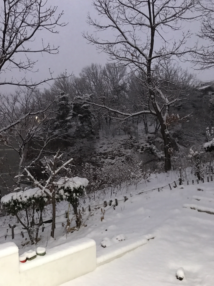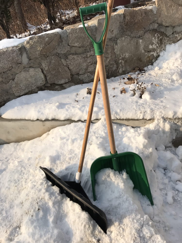 눈이 내린 다음 날, 넉가래와 눈삽을 처음 사용했다.