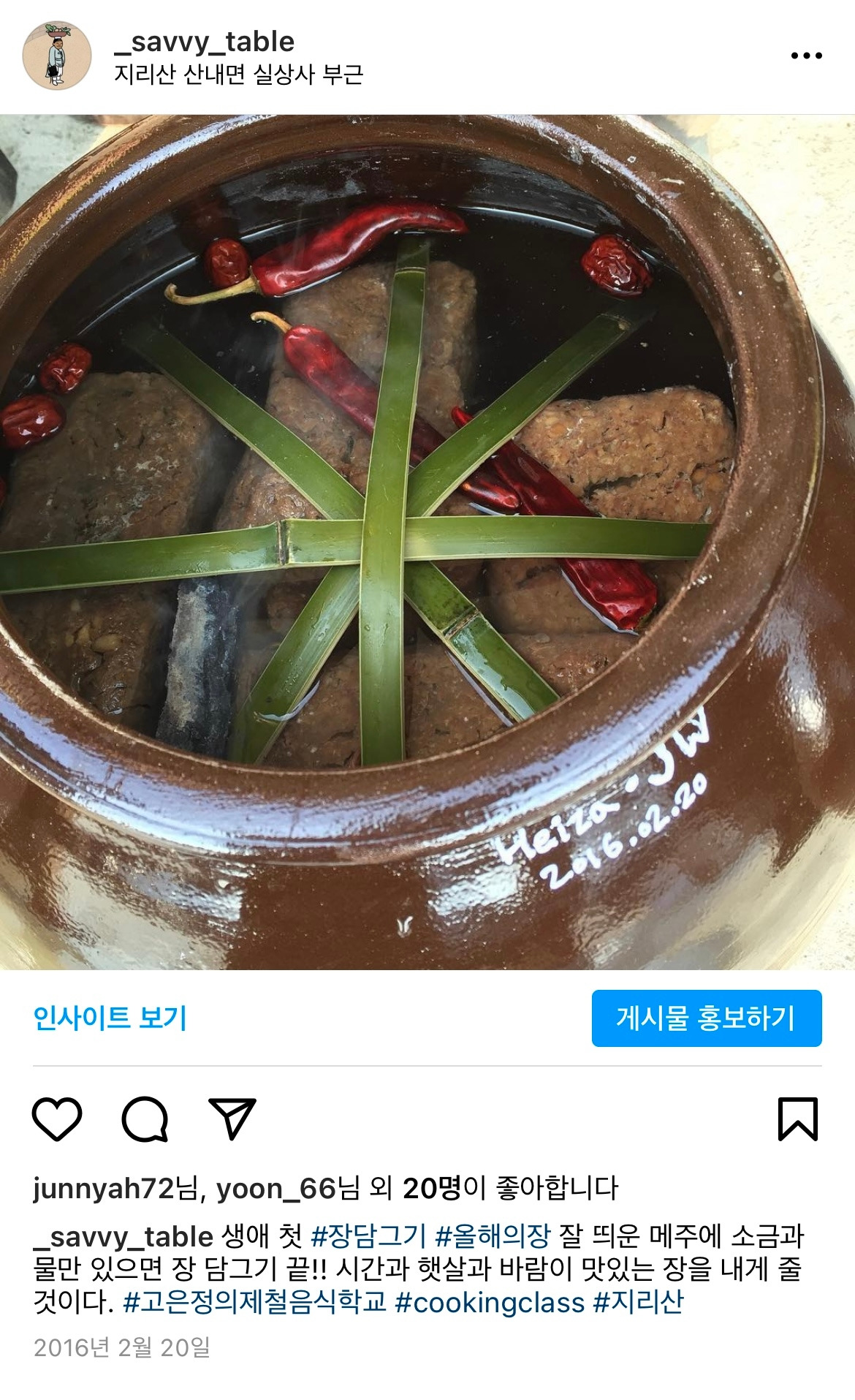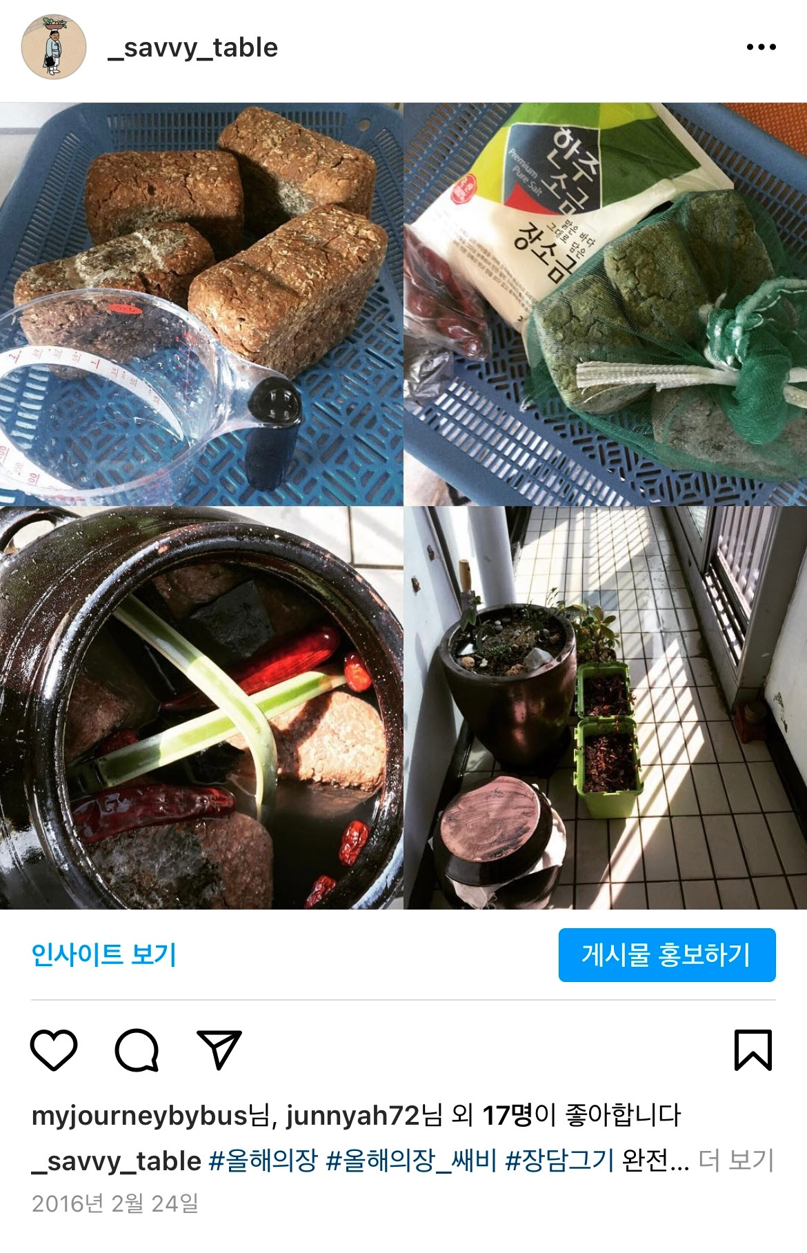 내가 처음 장을 담근 것은 2016년 2월이다. 고은정 선생님께 2015년 가을부터 음식을 배우기 시작했고 1년의 수업 과정에 장 담그기가 되었다. 이때 지리산 선생님의 스튜디오에서 반말, 우리 집 베란다에서 반말을 담갔는데 그 장을 아직도 가지고 있다.