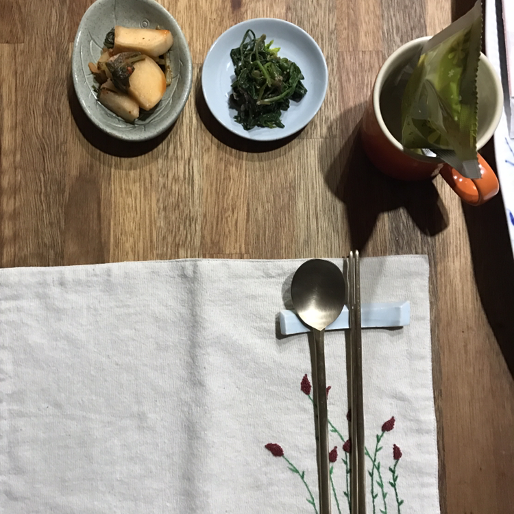 남편은 저보다 한시간 반 정도 출근이 늦습니다. 전 집에서 8시 전에 나서야 하지만 남편은 9시가 지나 나서도 되지요. 그래서 늦게 일어나는 날엔 종종 이렇게 남편의 밥상을 준비해두고 출근합니다. 이렇게 차려두면 남편은 귀찮아하지 않고 잘 차려 먹으니 참 다행이지요.