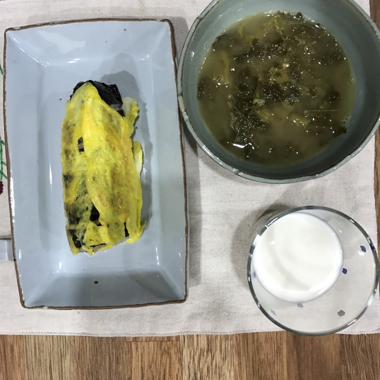 시래기된장국, 시금치, 순무김치, 계란후라이입니다.