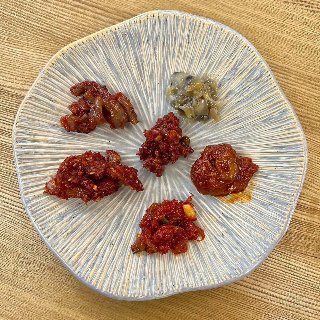 이렇게 내게 온 젓갈은 무려 7종이었다. 김 시인의 제부께서 인천 수산 시장에서 젓갈 도매업을 크게 하시는데 그곳 <덕적 상회>의 젓갈이다. 나는 3년 전부터 김장 때면 덕적상회에서 내린 액젓과 새우젓을 구매해 김장을 하고 때때로 젓갈을 사서 밥상에 올린다. 젓갈처럼 어려운 음식은 내가 직접 하는 것보다 잘하는 집의 것을 사 먹는 게 여러모로 좋다.
