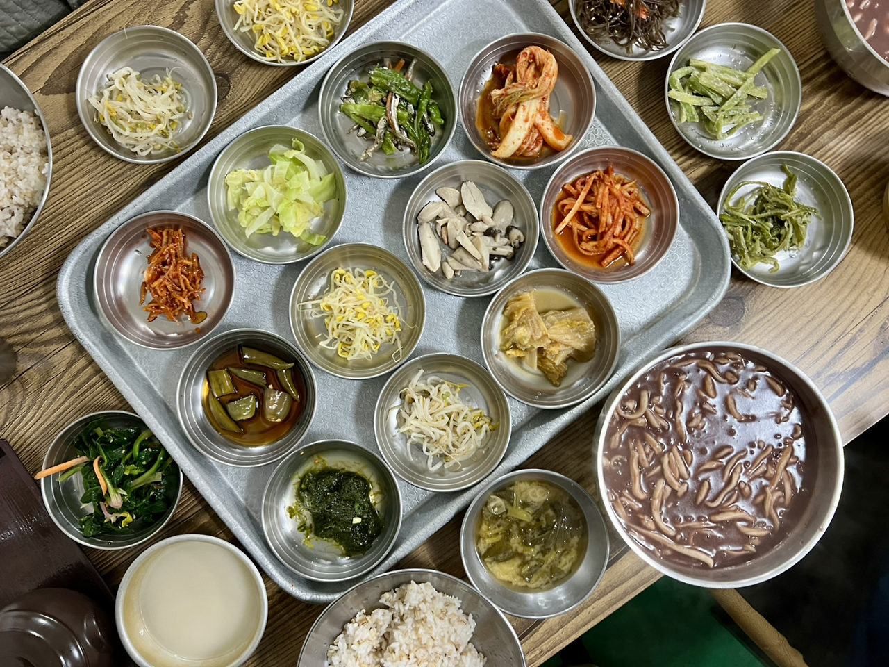 전라도 지역에선 팥죽이 참 흔하다. 전라도에서 팥죽이라 하면 대체로 팥죽에 칼국수 면이 든 팥칼국수이다. 이 집에도 팥을 곱게 내린 팥칼국수가 있다. 간이 딱 맞지만 설탕을 듬뿍 넣어 먹어 보아야 한다. 전라도에선 팥죽에 설탕을 넣어 먹는데 별미다. 우리 부부에게 장흥을 안내해 주신 무영 스님께선 전라도에서 팥죽에 설탕을 넣어 먹는 것은 강도 높은 노동 중 빠르게 당을 보충하기 위해서가 아닐까라고 추측한다고 말씀하셨다. 우리도 동의했다.