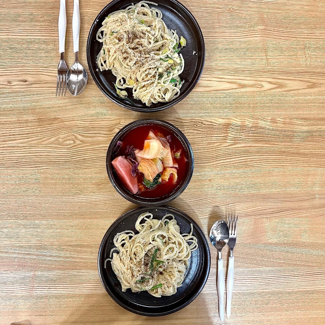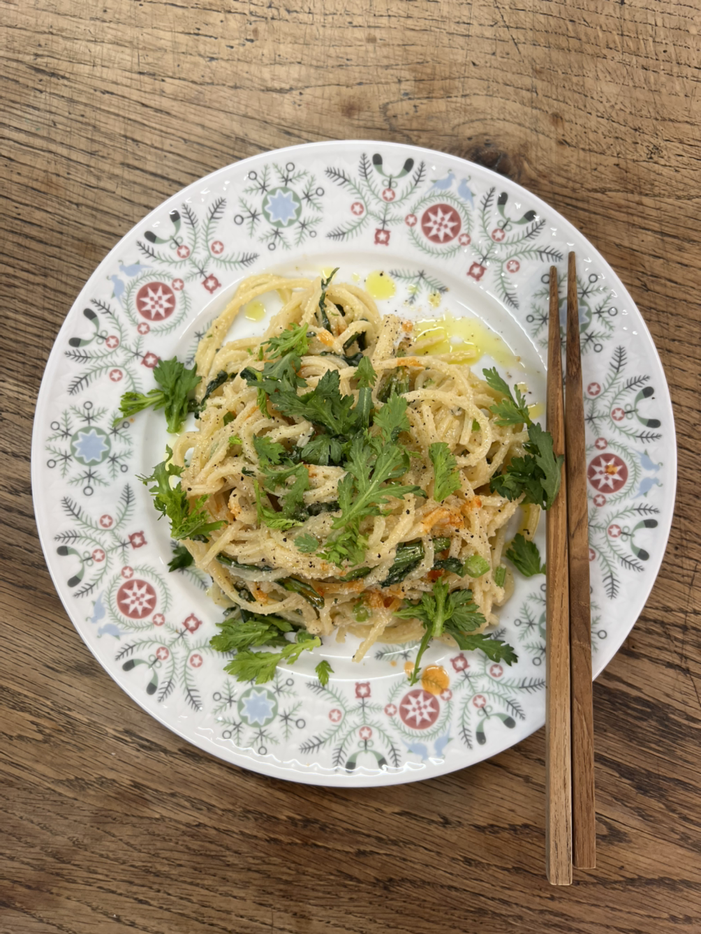 오늘 저녁에 해 본 음식은 명란 파스타다. 쑥갓 대신 달래를 넣었다. 달래의 뿌리 부분을 올리브 오일에 중약불로 뭉근하게 오래 볶음 다음 삶은 파스타 면을 넣어 센 불에 볶고 파스타와 달래 그리고 오일이 잘 섞인 후 불을 끄고 껍질을 벗겨 손질해 준 명란을 버무렸다. 분명히 식사를 준비했는데 안주 느낌이 풍성했다. 마시다 반쯤 남긴 소주를 꺼내 남편과 한 잔씩 마셨다. 이탈리안 음식에 소주라니… 나쁘지 않았다. 개성 없는 술 소주가 이래서 좋다.