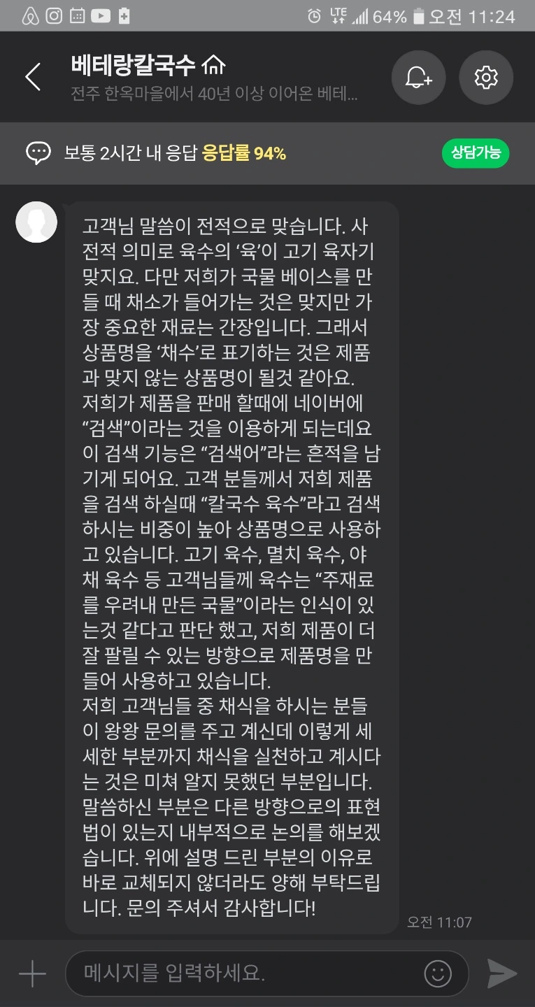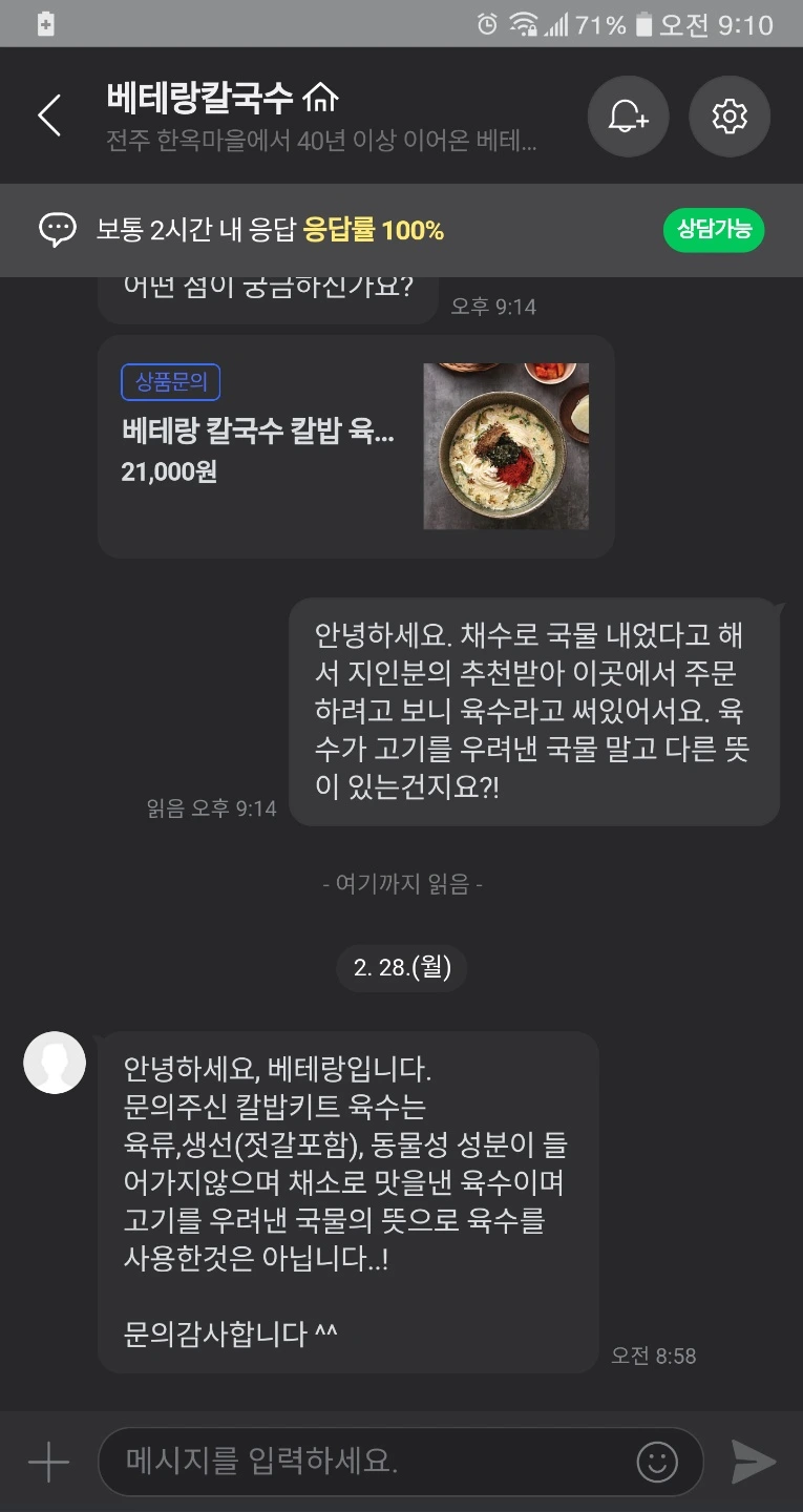 나는 궁금했고 내 친구도 궁금했다. 고객 센터에 올라온 질문을 보니 다른 사람들도 궁금했던 모양이다. 그래서 내 친구는 질문을 남겼다. 채소만 써서 낸 국물이라면 왜 육수란 표현을 쓰느냐? 육수에 우리가 모르는 다른 뜻이 있냐?