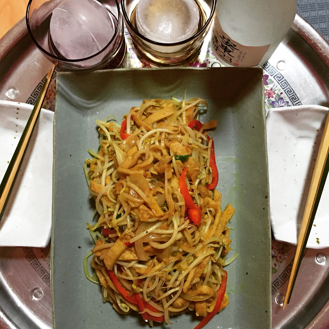 어묵을 넣고 마지막에 숙주를 넣습니다. 집간장과 후추 그리고 강황가루를 뿌려 간을 맞추고 맛을 냅니다.
