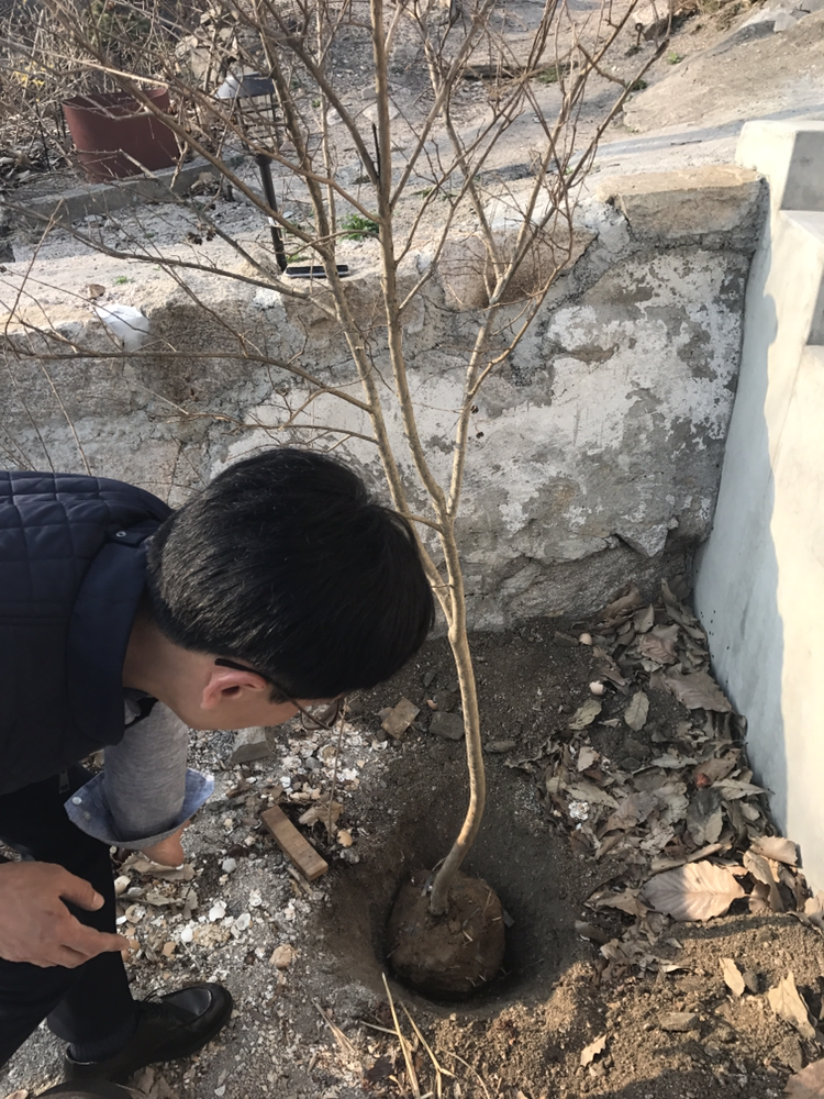 종로꽃시장에서 직접 수형이 이쁜 나무를 골라 오셔서 손수 심어주셨다.