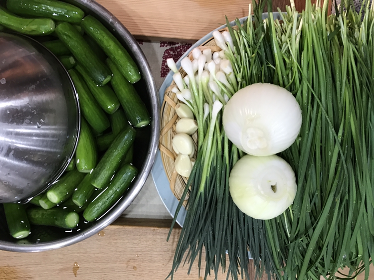 아직 좀 이르지만 성북동소행성 김치모임에서 오이소박이를 담갔습니다. 동네친구 몇과 한달에 한번 쯤 김치를 함께 담그거든요. 친구 중 한명이 오이소박이가 먹고 싶다하여서 담갔어요.
