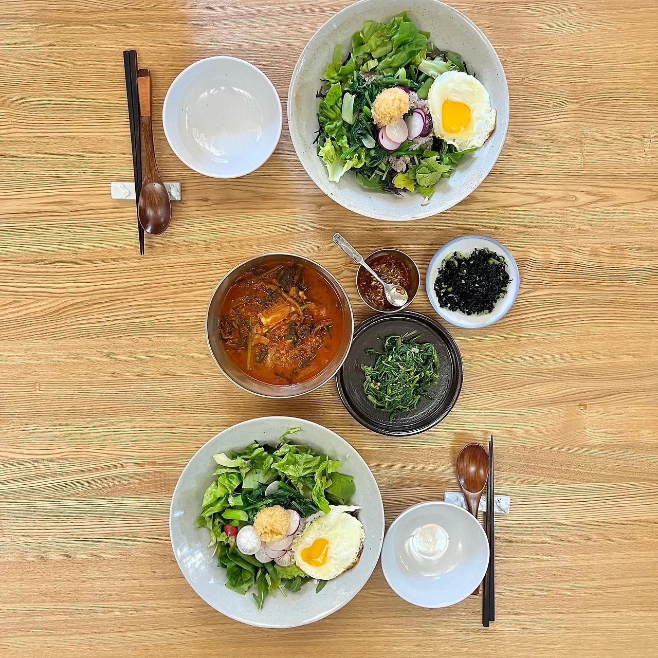반찬 하기도 싫고 하여 채소 잔뜩 넣고 비빔밥을 했다. 거친 채소는 데쳐서 넣으니 채소를 훨씬 더 많이 먹을 수 있다. 고추장은 별로라 달래 간장으로 비볐다. 뭔가 살짝 어린이 맛도 필요해 자른 미역과 샐러리를 올리브 오일에 볶아 넣고, 날치알도 얹었다. 남편도 나도 맛있다 감탄하며 먹었다. 이렇게도 먹는 것이다.