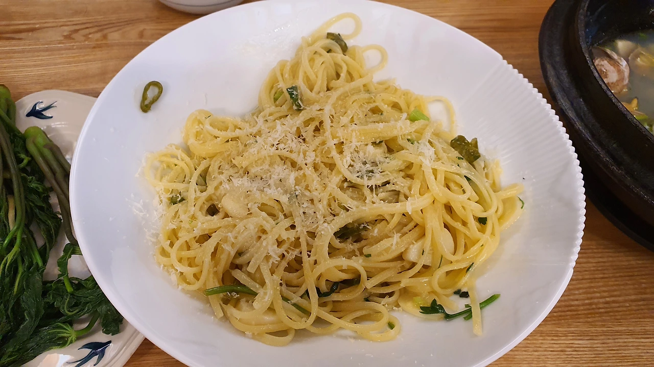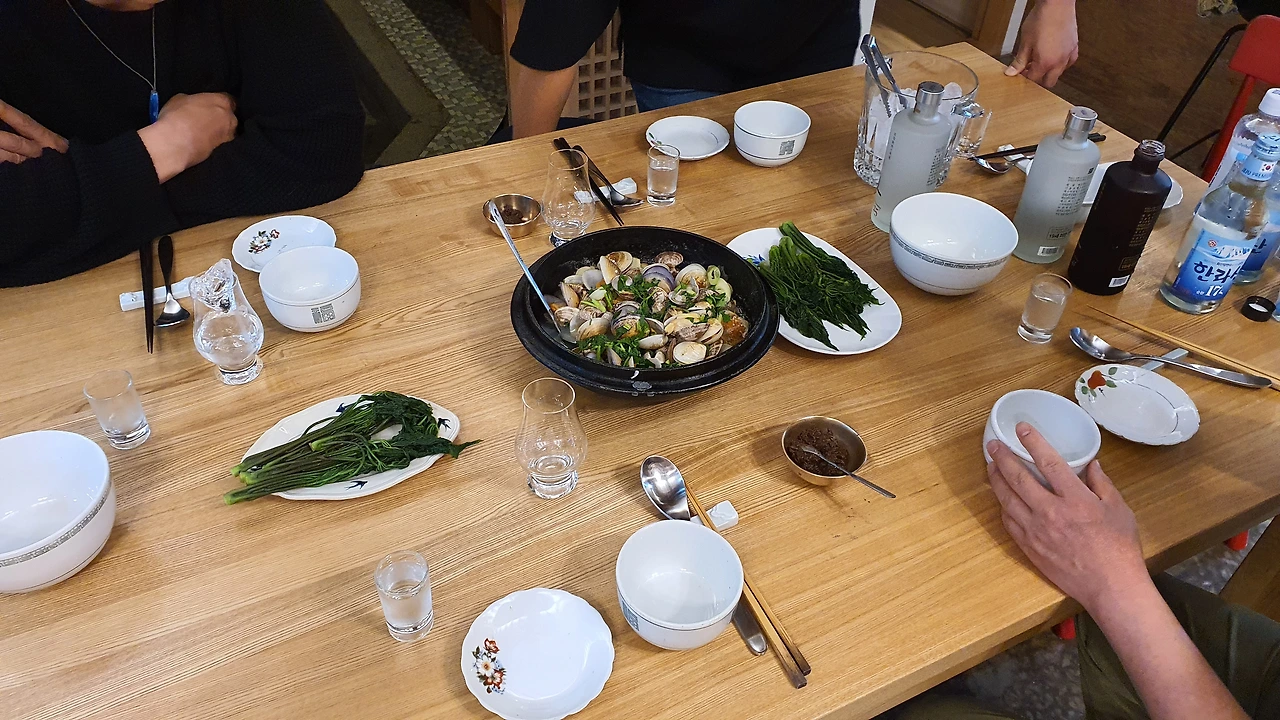 남편과 이 피디, 호산과 만나 1차는 구포국수에서 하고 2차는 우리집으로 왔다. 낮에 다은이 집에 가서 장 가르기를 돕느라 어차피 우리 집에서 놀기엔 무리가 있어 그러자고 했다. 모시조개로 술찜을 하고 나물을 데치고 파스타를 했다. 막 차린 술상였지만 즐거웠다.