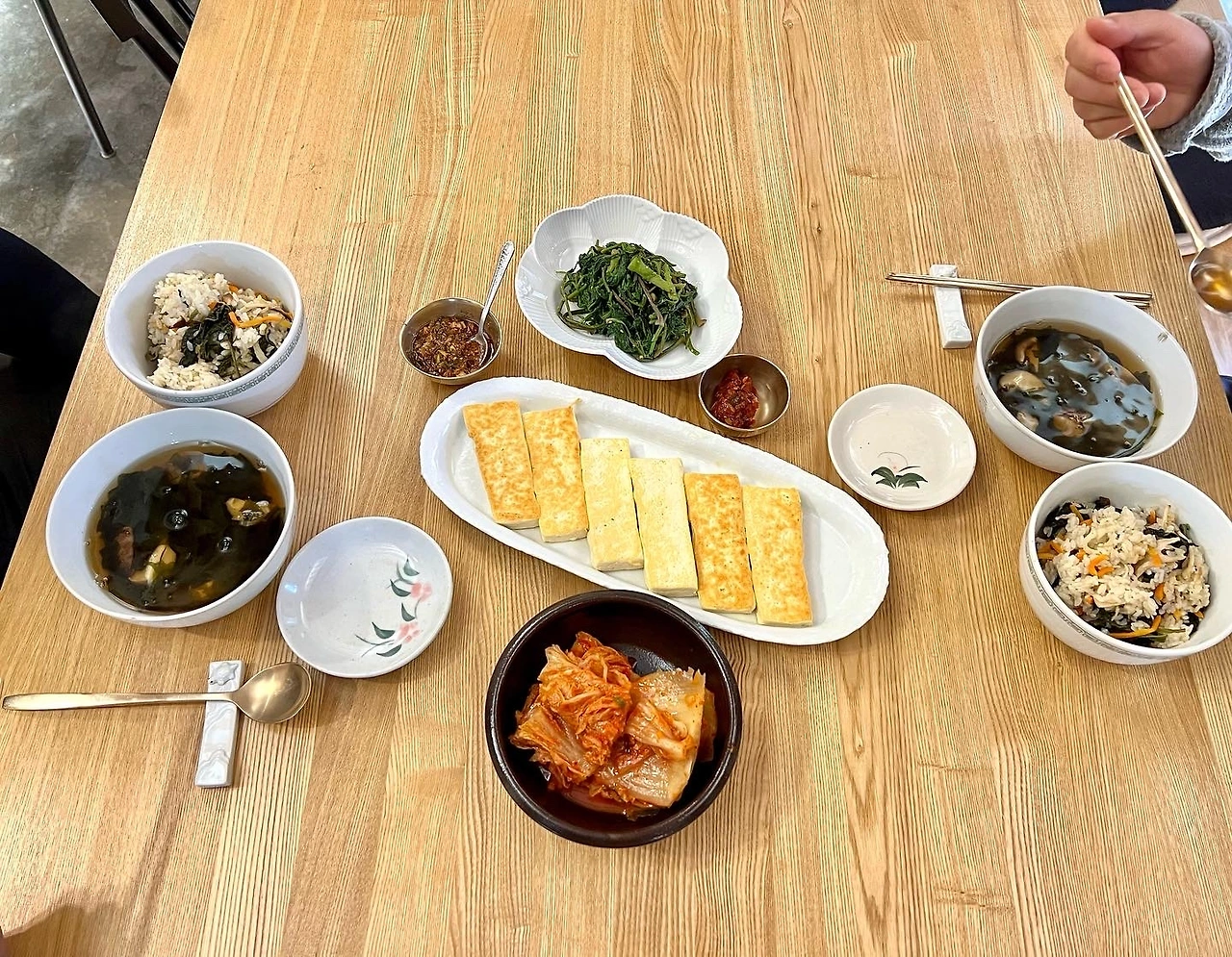 곤드레 밥에 버섯을 듬뿍 넣어 밥을 짓고, 미역국을 끓이고, 엄나무순을 무치고, 두부를 지져서 상을 차렸다. 목수님은 별 반찬 없이 김치만 맛있어도 식사를 잘하신다는 것을 알지만 그래도 손님에게 내기엔 약간 미안함이 드는 밥상였다. 그러나 목수님은 밥에 양념간장을 넣고 비벼서 맛있게 드셨다.