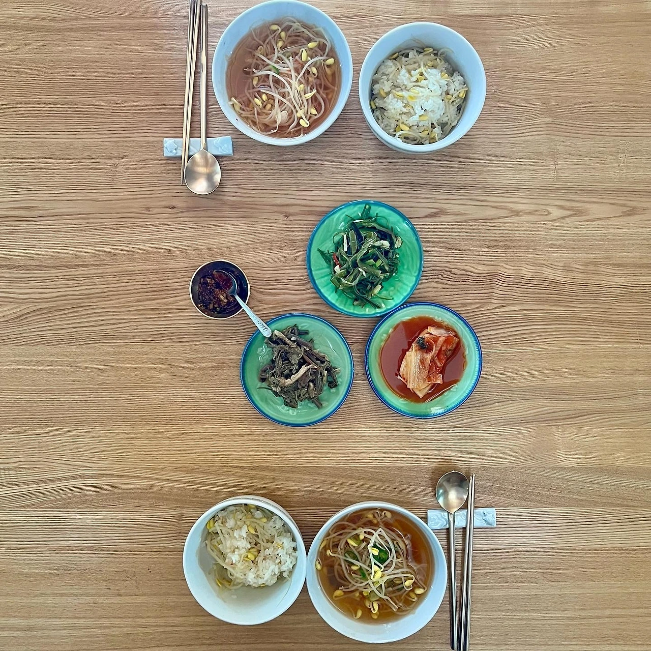 콩나물 밥은 콩나물을 따로 삶은 후 그 물로 밥물을 잡고 콩나물은 밥이 뜸 들 때 얹어야 맛있다. 그런데 리 모든 게 귀찮은 나는 쌀을 안칠 때 콩나물을 같이 넣었다. 콩나물 밥의 맛은 참기름이 넉넉히 들어간 양념장에 있다고 믿기 때문이다. 그런 면에서 콩나물 밥은 성공적였다.