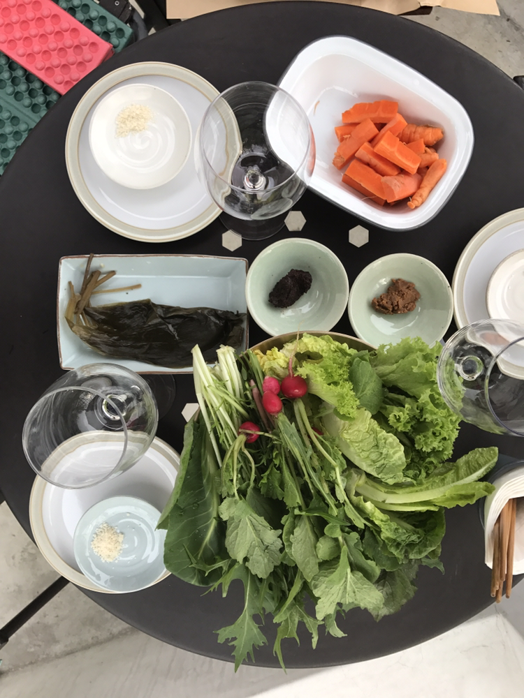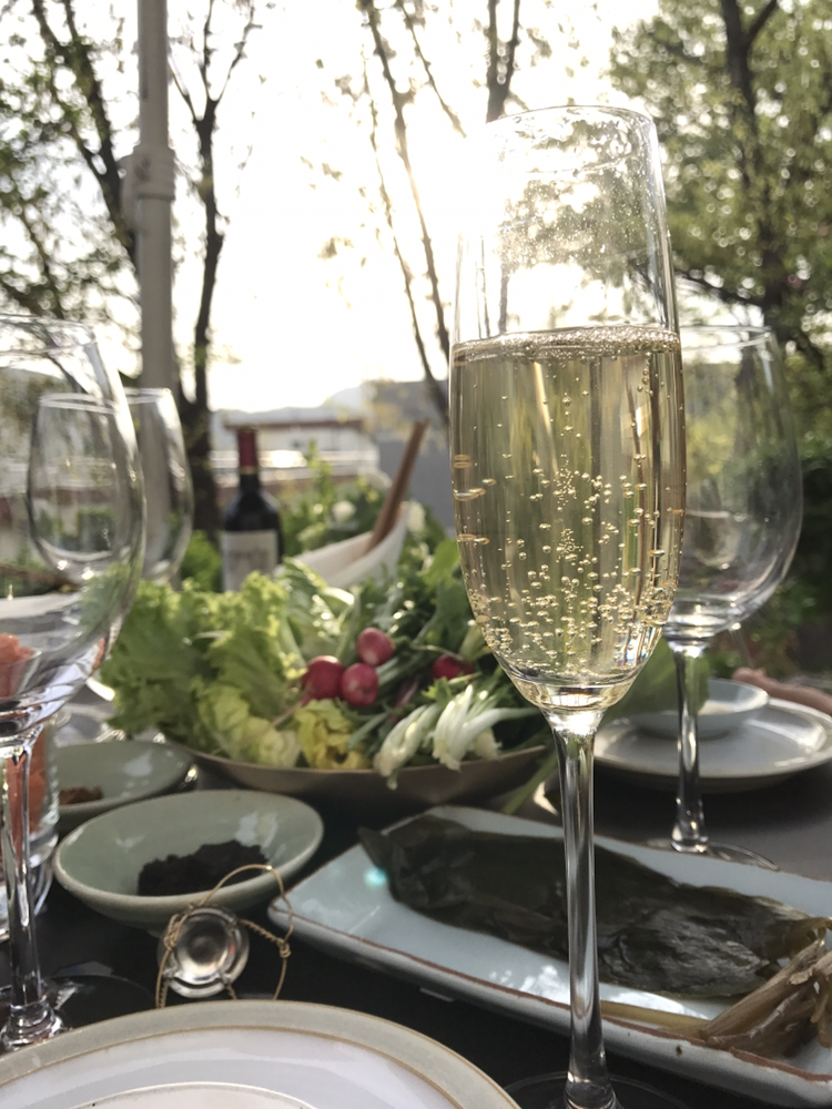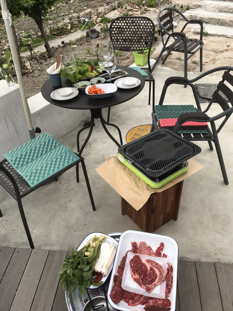 마당에 파라솔을 세우고 친구들을 불렀습니다. 별도러 꽃구경을 가지 않아도 됩니다. 조촐하게 상을 차리고 친구들을 부릅니다.