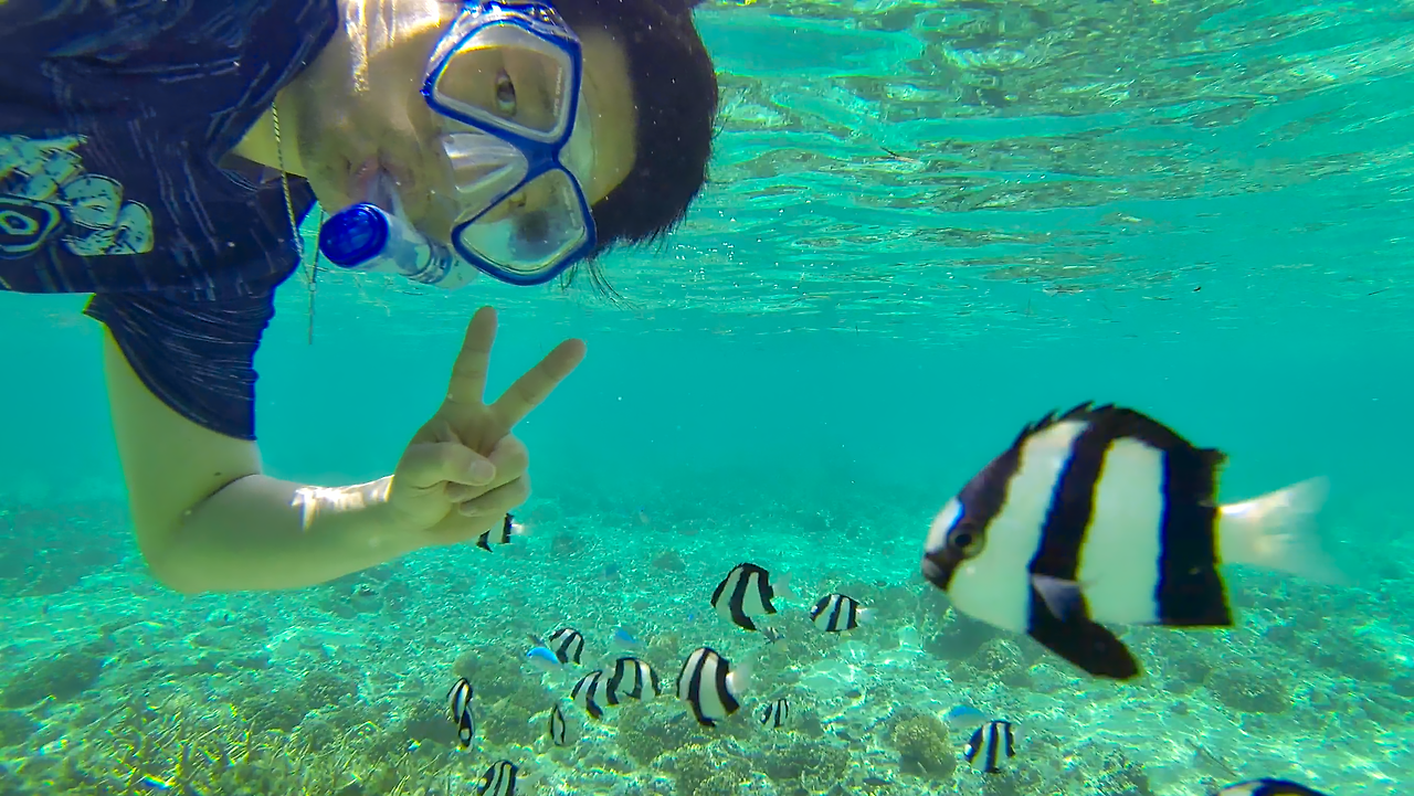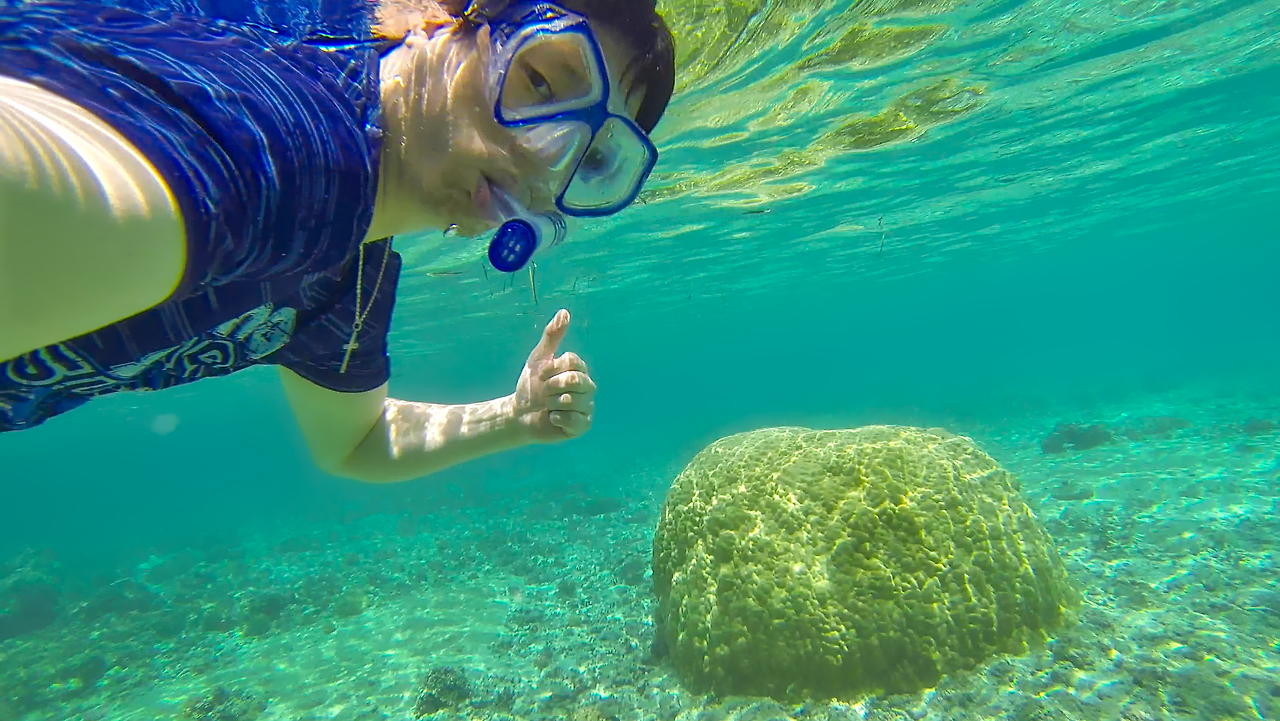 당연 마나가하 섬은 스노클링 포인트이다. 외해로 조금만 멀리 헤엄쳐 나가면 수심이 2미터 까지도 나오는 것 같다.