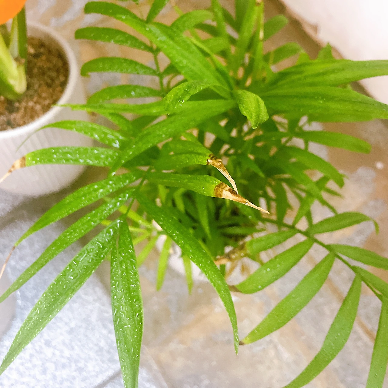 테이블야자처럼 훨씬 얇고 연한 잎이지만 잘 자라고 데미지 좀 입어도 금세 회복하는 녀석이 있는가 하면 몬스테라 저 어린잎처럼 손 많이 가는 녀석도 있기 마련이다. 몬스테라에서 비실거리던 두 녀석이 있는데 하나는 얘이고 다른 하나는 진작에 잘라냈다. 지나치게 색이 검게 변하고 회생 기미가 없던 녀석이다. 너무 잘 커서든 도저히 못 살릴 거 같아서든 어느 쪽이든 잘라내야 할 때가 오기도 한다.