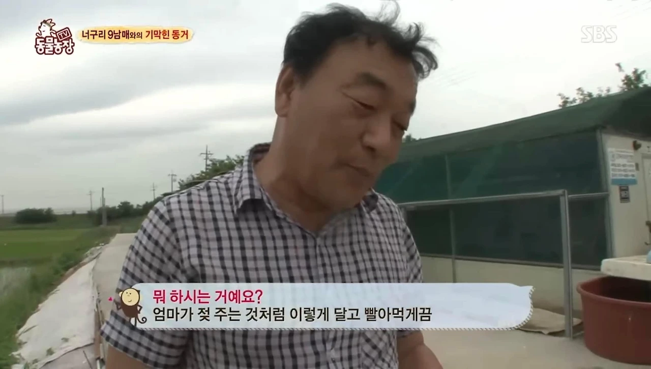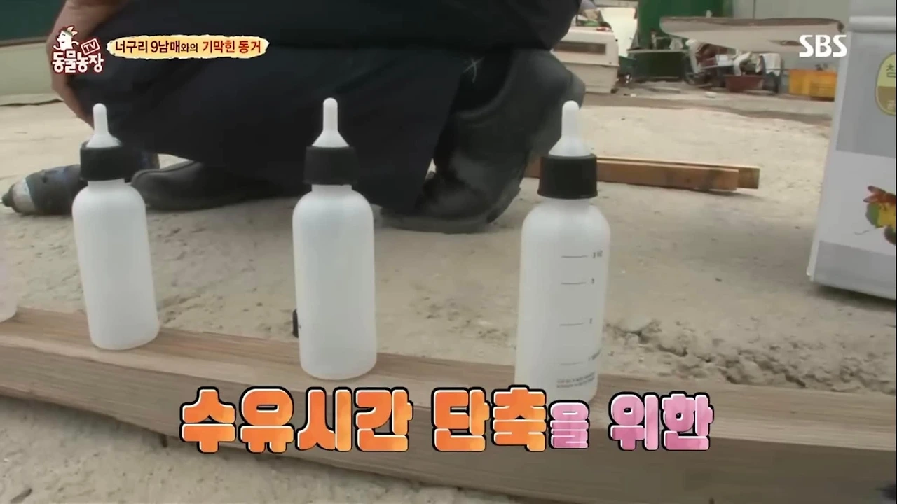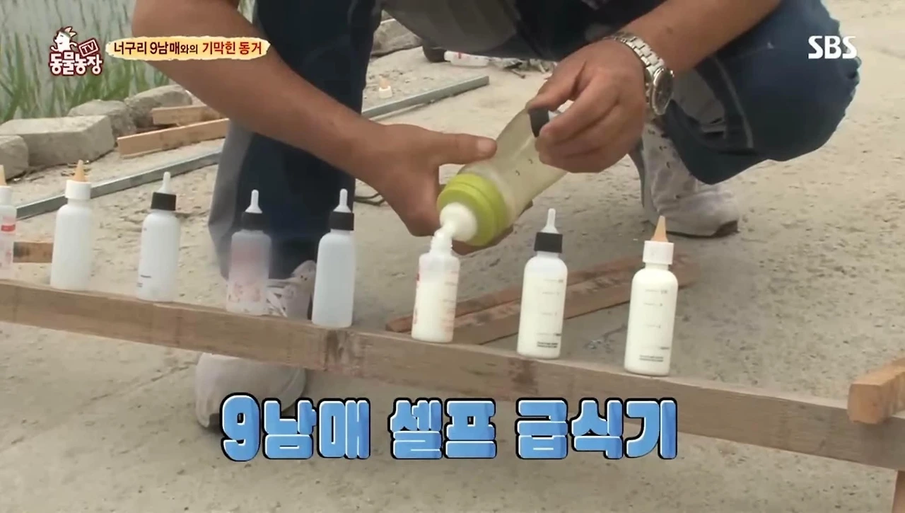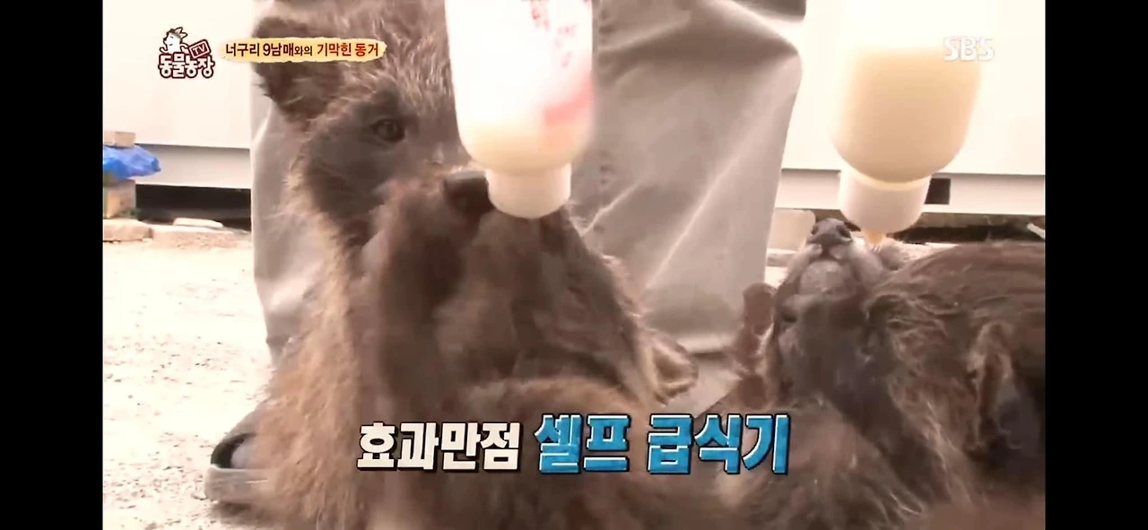 전에도 야생동물을 구조해 돌본 적 있는 이분은 어미 잃은 새끼 너구리 9남매를 돌본다. 아홉 마리에게 우유를 먹이면 2시간이 훌쩍 지난다. 이걸 하루에도 몇 번씩 해야 하고. 일도 해야 하는데 굶길 수는 없으니 고안한 게 셀프급식기.