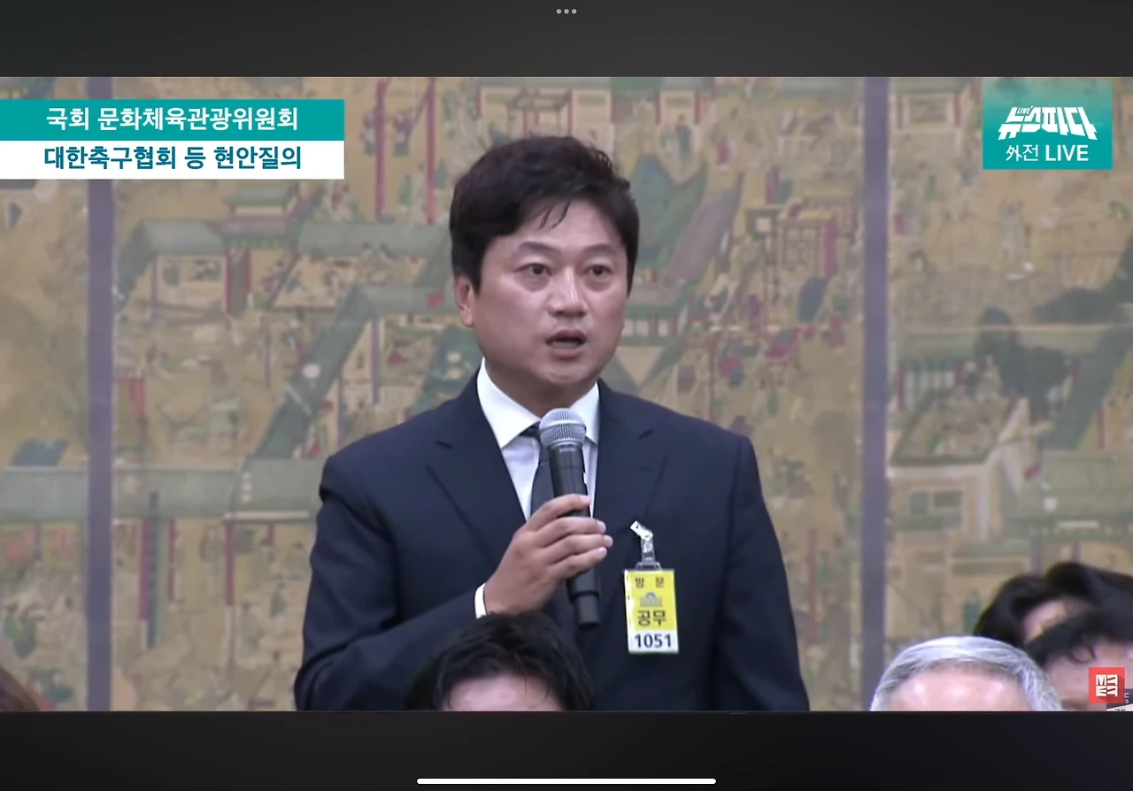 박문성 해설위원, 축협 국회 질의 중