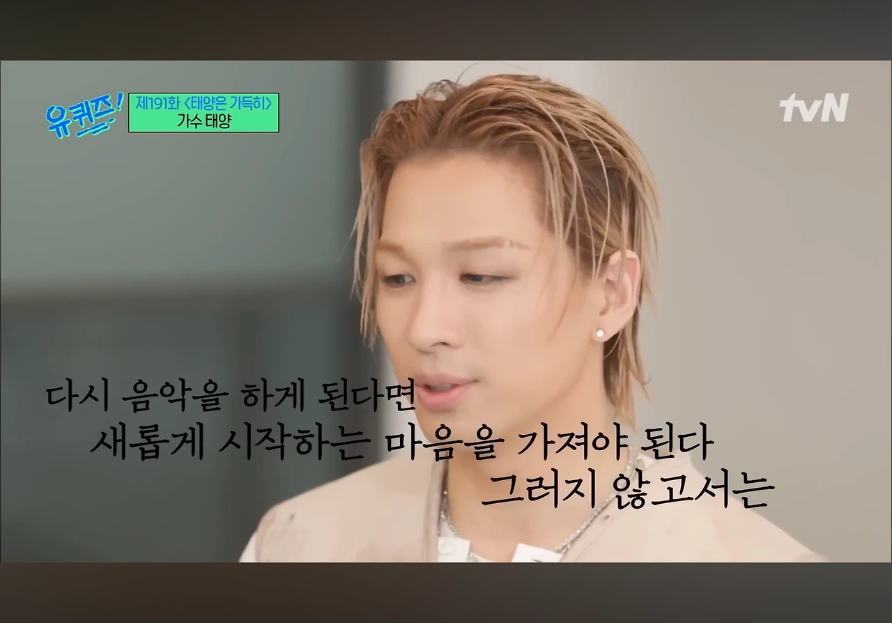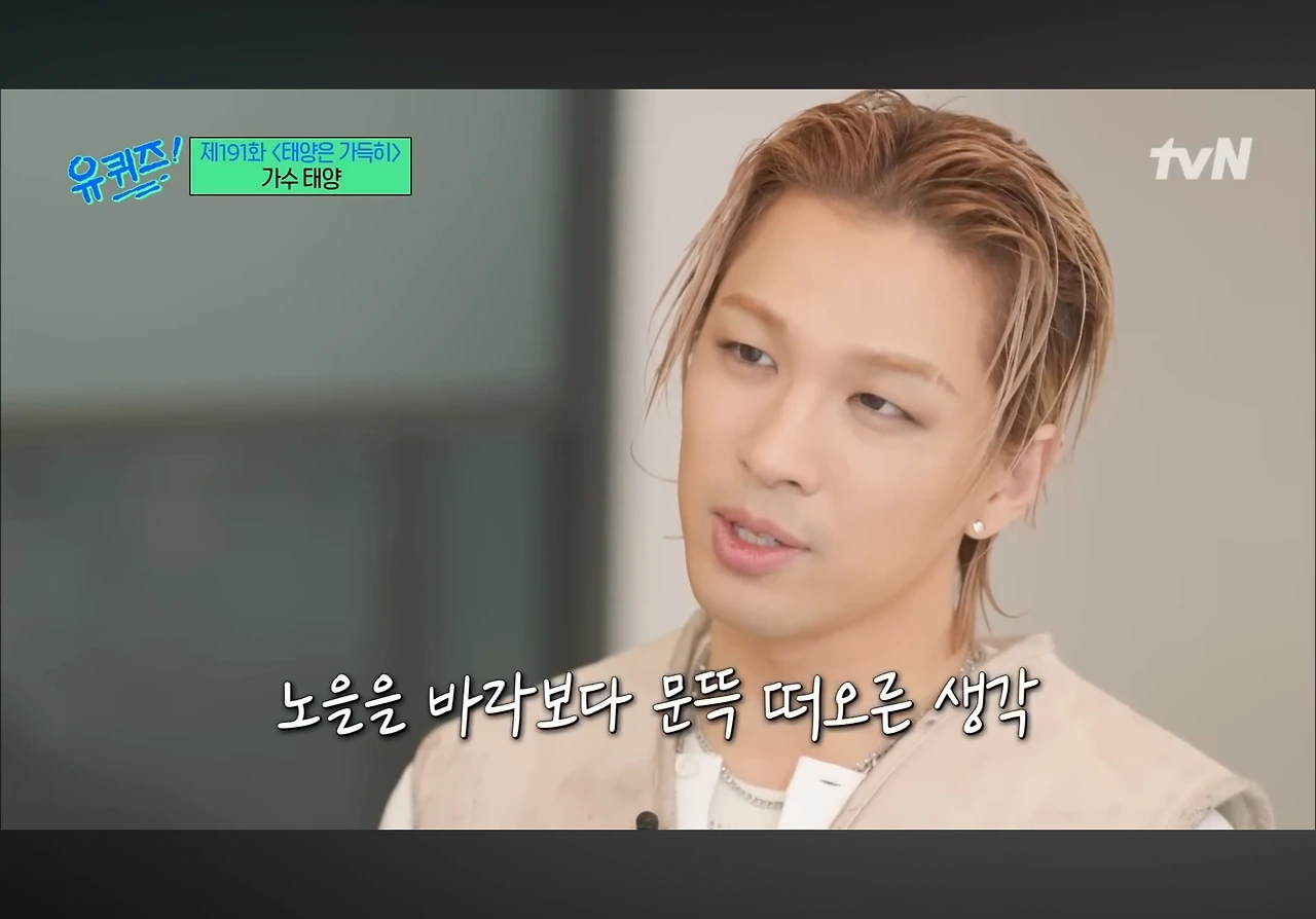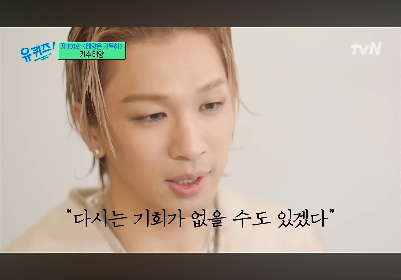 얼마 전 유퀴즈 GD 편을 보면서 예전에 태양이 출연했던 편이 기억나 다시 찾아봤다. 당시 노을을 빗대어 덤덤히 말하던 생각이 나서.