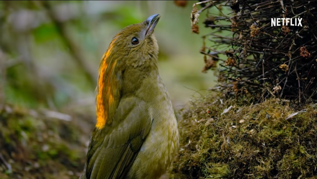 <새들과 춤을>은 암컷과의 짝짓기를 위해 구애하는 수컷 새들의 생태계를 담은 넷플릭스 오리지널 다큐멘터리로 51분이라는 그리 길지 않은 러닝타임 속에 위트 넘치는 내레이션 , 경쾌한 효과음 , 그리고 귀엽고 웃겨서 조금 측은한 마음까지 드는 새들의 몸짓이 완벽하게 어우러져 있다. 더불어 눈을 시원하게 해주는 것만 같은 화면 가득 펼쳐지는 뉴기니의 밀림 풍경과 새들의 고운 깃털의 결까지 포착해낸 카메라 화질이 선사하는 쨍한 영상미가 기분을 좋게 만들어 주기도 했다.