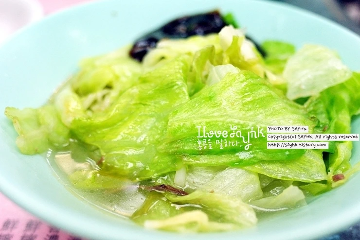 홍콩에 살면서 알게된 맛이라면 쵸이삼(菜心)과 까이란(芥蘭)등 데치거나 살짝 볶아서 굴소스를 곁들여먹는 여러 야재요리의 맛이 아닐까 싶다. 중국요리를 먹을때는 물론 딤섬을 먹을때나 간단한 국수를 먹을때도 한가지정도는 곁들여 주문을 하게 되는데 오늘은 서양상추데침을 시켰다.