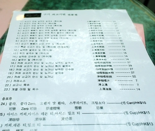 맞춤법이 다소 아쉬운 메뉴판이지만 그래도 아쉬운대로 주문시 불안감을 해소시켜주며 그만큼 한국관광객들이 많이 찾는 집인것을 알 수 있다.