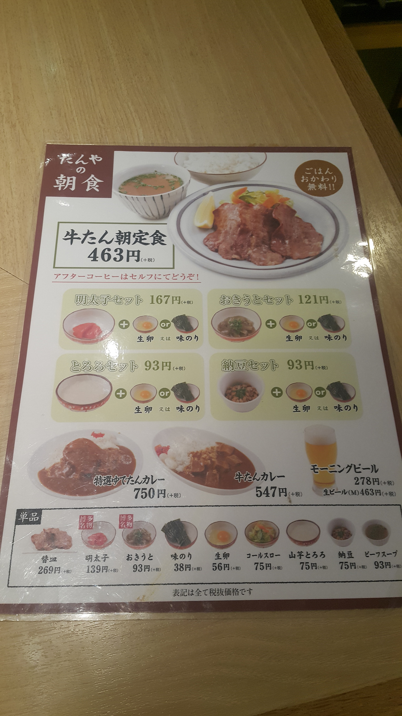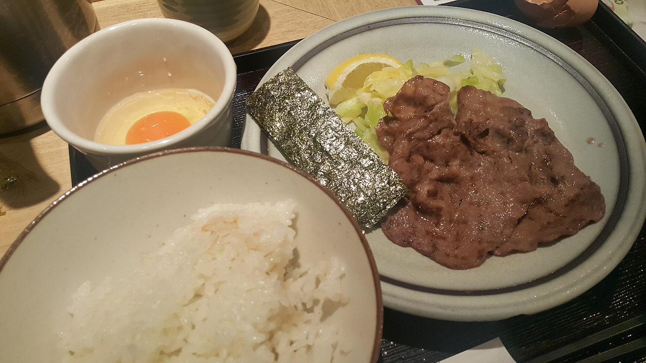 마지막날 조식으로 먹은 우설구이! 숙소에서 공항까지 가는 버스비 몇백엔 빼고 딱 밥값 맞춰 남겼다가 사먹어서인지 더 기억에 남는다. 조식세트인 우설구이 정식에 날계란 하나 추가해서 밥에 올리고, 간장 넣어 김에 싸먹었더니 진짜 최고다. 남들은 일본김 두꺼워서 맛없다고하는데 나는 일본김이 더 취향이다.