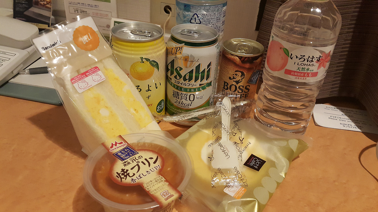 일본은 편의점 음식들이 진짜 좋다. 저 계란샌드위치도 계란이 아주그냥 꽉꽉 들어차있어서 둘째날 아침으로 먹었고, 푸딩과 그 유명한 로손 롤케이크는 욕조에 몸 담그고 목욕하면서 맥주랑 같이 먹었다.