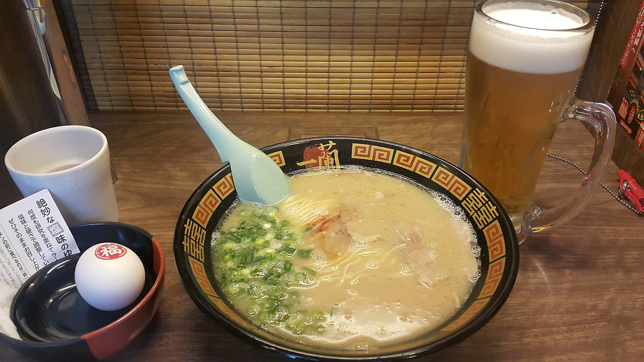 조금 이른 점심으로 텐진호르몬을 먹고 발레수업을 하고 나오니 2시반쯤이었다. 배가고파서 들어간 이치란 라멘 본점. 육수는 진하게+면은 보통으로 해서 비법소스 2단계로 택했다. 쪽파를 넣고 계란반숙을 넣으니 진짜 국물이 뼛속까지 녹아드는 느낌이었다. 맥주까지 곁들이니 운동한 보람은 사라졌지만 맛으로 다 덮었다.