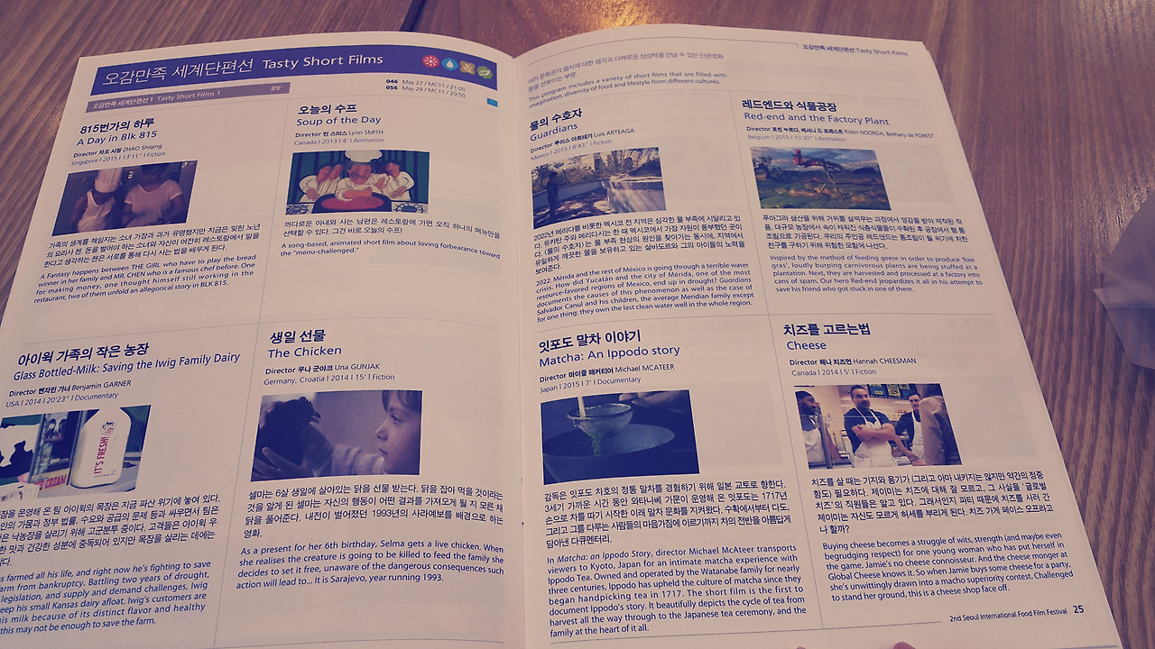 결과적으로는 이번 서울국제음식영화제는 장편영화가 훨씬 좋았다. 영화의 퀄리티도 높았고, 대만과 일본의 전통 음식들을 제대로 맛보며 눈으로 실컷 정찬을 즐긴 기분이었다. 먹고 사는 문제는 시대를 초월하고, 나라를 가리지 않는다는 보편성과 함께 지역별 특수성도 동시에 느꼈다. 다만 단편모음은 약간 홍보영화같은 느낌이 드는 것들이 좀 있어, 성공율이 높지는 않았다.