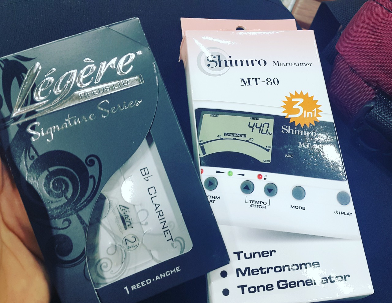 그래도 악보를 계속 봐온 덕분인지 이번 합주는 덜 당황하고 잘 끝났는데, 악기 정리를 하다가 옆자리 교수님 리드케이스에서 합성리드를 보았다. 궁금했던 걸 여쭤보니 그래도 결론은 '쓸만하다'였고, 낙원으로 달려가 레제르 리드를 샀다. 레제르만 샀음 다행이게? 메트로늄이 되는 튜너와 악기스탠드도 샀다. 비싸고 작은 놈으로 질렀다.