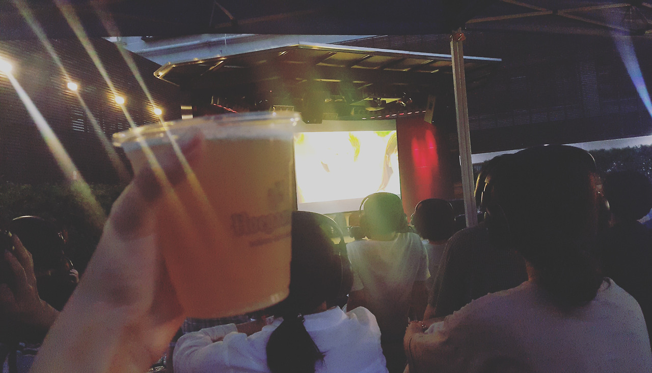 영화를 보기 전, 30분정도 짧은 공연이 있었다. 제이얼랏이라는 싱어송라이터의 공연이었다. 감성적인 목소리가 끝나고, 날것의 감정을 그대로 보여주는 솔직한 영화를 보고(초등학교 4학년의 여자아이들이라면 누구나 이해할 만한 상황과 그때의 감정들...)맥주도 먹고, 가져간 빵도 뜯어먹고 있었다.