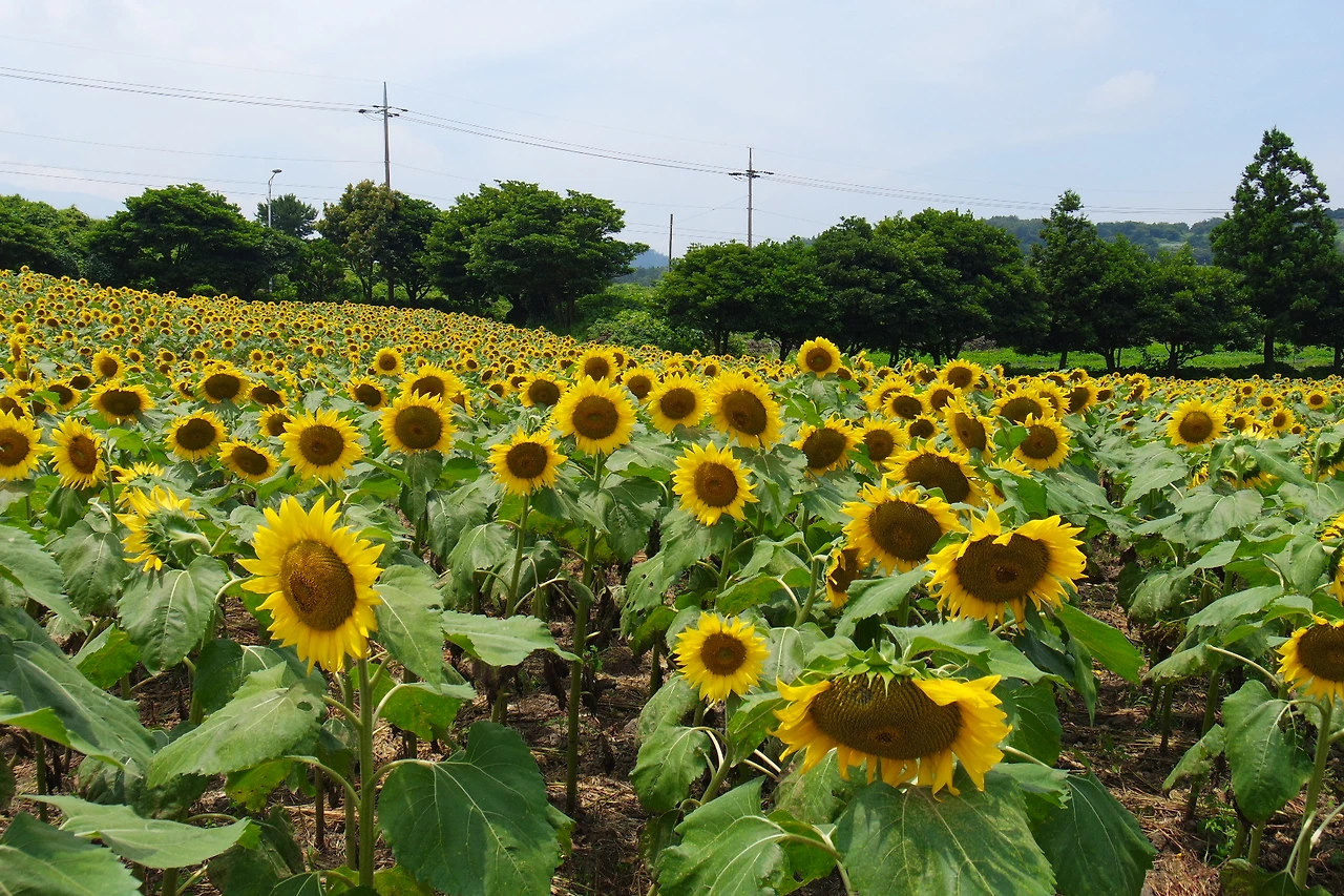 그저 인스타를 검색하면 많이 나오는 카멜리아힐이나 가볼만 하겠다 생각했었는데, 내가 간 시기는 이미 7월이라 카멜리아는 많이 시들었고 딱 이시기에 볼 수 있는 해바라기가 장관이라길래 들러보았다.