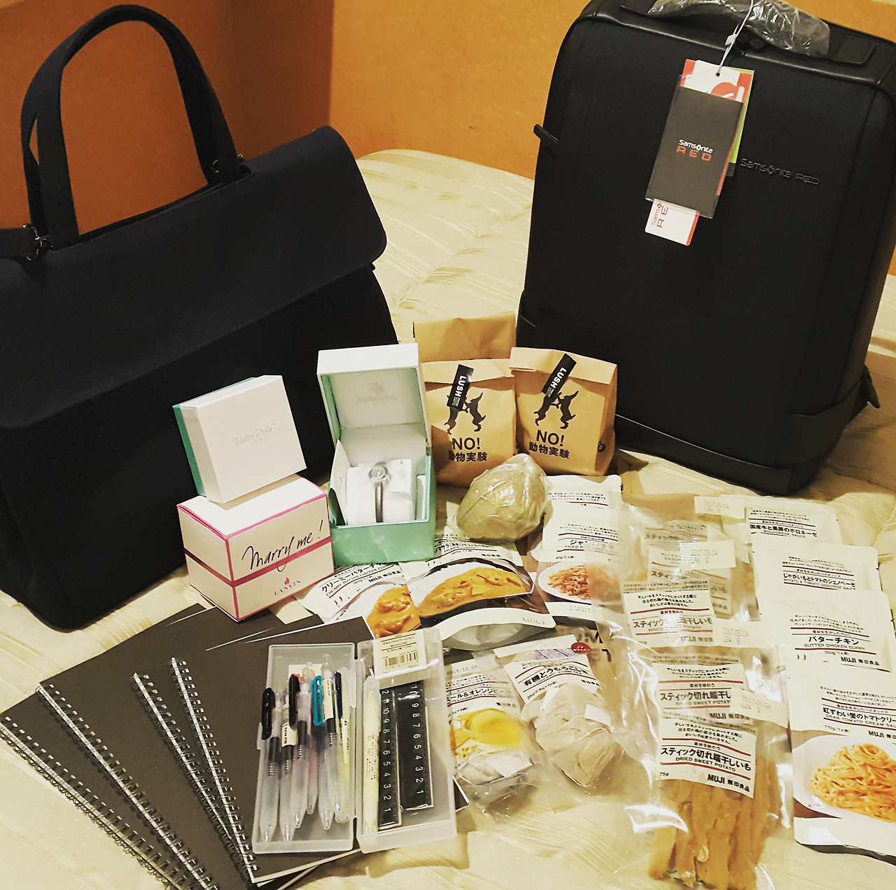 첫날 오후에 하카타역 호텔에 도착해 짐을 풀자마자 장어덮밥을 먹고, 첫날부터 폭풍쇼핑을 했다. 숙소에서 쓸 입욕제 네개를 러쉬에서 사고 우연히 들른 무인양품에서 파스타 소스와 볶음밥 소스, 카레, 문구류, 차, 친구들 선물 줄 고구마말랭이를 사왔다. 일본의 무인양품은 우리나라보다 훠어얼씬 싸다. 무인양품 노트와 펜도 그렇게 비싸지 않다.