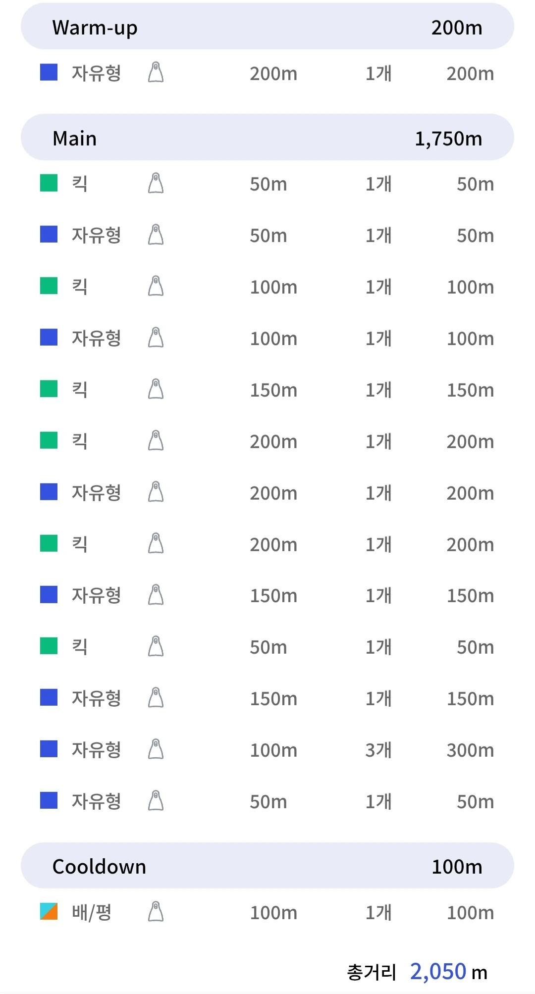 킥판 잡고 싸이드 킥 6회 100m 3회