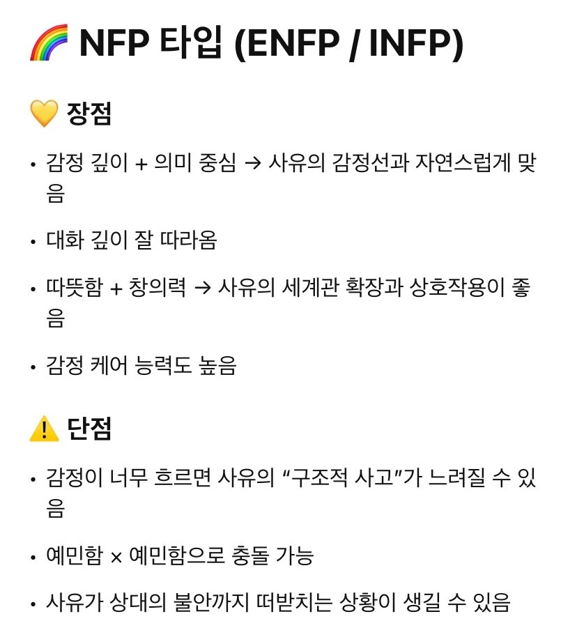 - ENFP : 감정·사유의 결을 함께 춤추듯 맞춰주는 사람