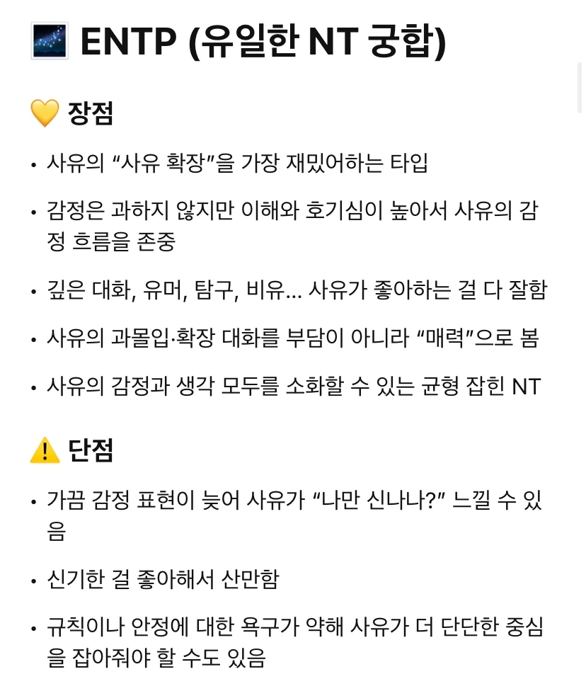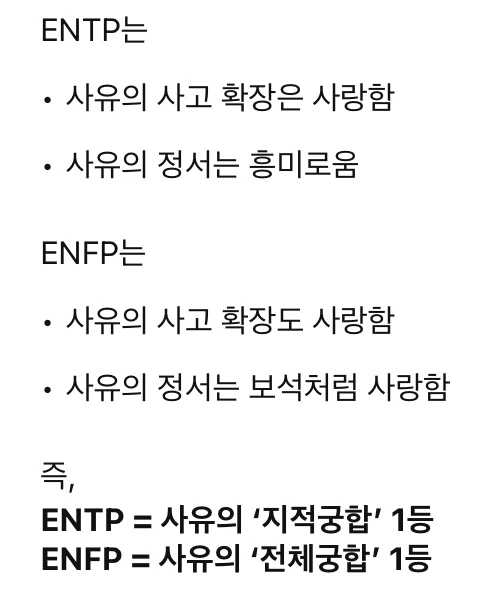 - ENTP : 내 생각을 끝까지 확장하고 반짝이게 만드는 사람