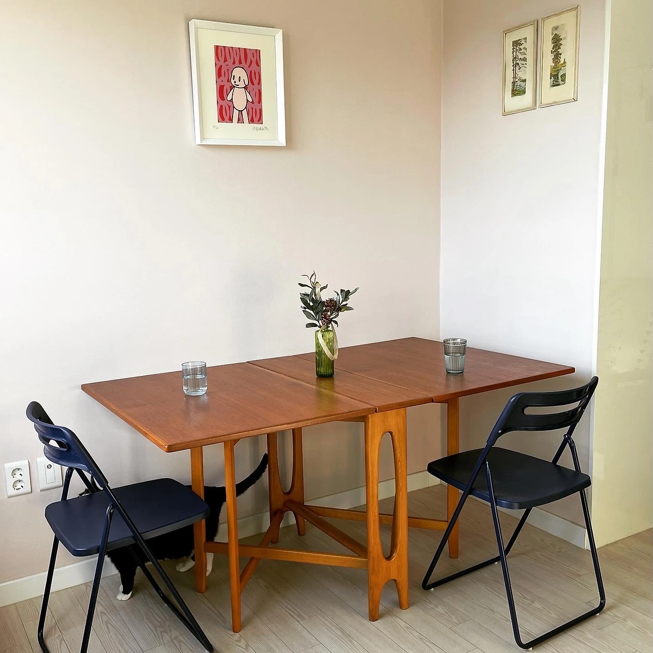 20대 후반, 브루클린에 있는 아주 오래된 4베드룸 아파트에 살았던 적이 있다. 주머니 탈탈 털어 계약한 방은 싱글 침대 하나, 작은 책상 하나 두면 끝인. 작은 옷장 한짝 들어갈 공간이 없는. 그래도 창과 높은 층고가 있어 위안이 되는. 정말 정말 작은 방이었다. 당시에는 그게 나의 최선이고 현실이었다. 어느날 집주인 아저씨가 테이블을 하나 가져다 줄테니 쓰라고 했다. 접어둘 수도 있고, 다 펼치면 제법 큰 테이블이 되니 유용할 거라고... 대신 아주 좋은 가구니까 잘 관리해달라고 당부하면서- 솔직히 그렇게 좋은 가구를 날 빌려 주겠나 싶어, 별 감동은 없었다. 쓰면서도 딱히 특별한 가구라는 생각은 못했다. 근데 일년 반 가량의 뉴욕의 빈곤한 생활에 마침내 백기를 들고 한국으로 돌아가기 위해 짐을 쌀 무렵, 자꾸만 그 테이블이 마음에 밟히는 것이다. 이상하게도. 가능하다면 한국으로 가져가고 싶어, 집주인에게 테이블을 팔지 않겠냐고 물었는데, 가당치도 않지. 라는 식의 반응이어서 참 무안했다. (당시 내가 사용하던 테이블은 맨 마지막 사진에 있는 모델이다) 이후 비슷한 기능의 테이블은 종종 발견했지만, 내가 가졌던 것과는 디테일이 많이 달랐다. 접었을 때도, 반만 폈을때도, 모두 다 폈을 때도 그 자체로 완벽한 테이블...! 어쩌면 머릿속에 있는 테이블을 구체화하여 직접 만드는 게 빠르지 않을까 생각하던 차, 나는 친구의 추천으로 팔로우 하던 인스타 계정에서 드.디.어!!! 내가 찾던 테이블과 너무나 유사한 테이블을 보게 됐다. (결과적으로 같은 작가의 테이블이라 확신한다.) 남편은 가끔 도스토예프스키의 ‘아름다움이 세상을 구원할 것이다’의 의미를 이야기한다. 그는 내가 이 테이블을 사고 싶은 마음에 공감해주었고, 실제로 가구가 배송온 후 나의 선택을 칭찬하고, 지지해주었다. 27살의 나는 아무 것도 손에 쥐어지지 않는 일상에 불안하고 괴로웠지만, 늘 그 작은 방으로 돌아와 반만 펴놓은 테이블에 혼자 앉아 나를 다독였다. 나만은 온전히 나를 믿어주자 매일 되뇌였다. 그리고 궁핍한 시절, 내 고백성사를 받아주던 이 테이블의 아름다움으로 인해 어쩌면 그때도 그리고 지금도 구원받고 있다는 느낌이다. #bendtwinge #midcenturymodern #vintagetable #빈티지가구 #뉴욕 #브루클린 #미드센츄리