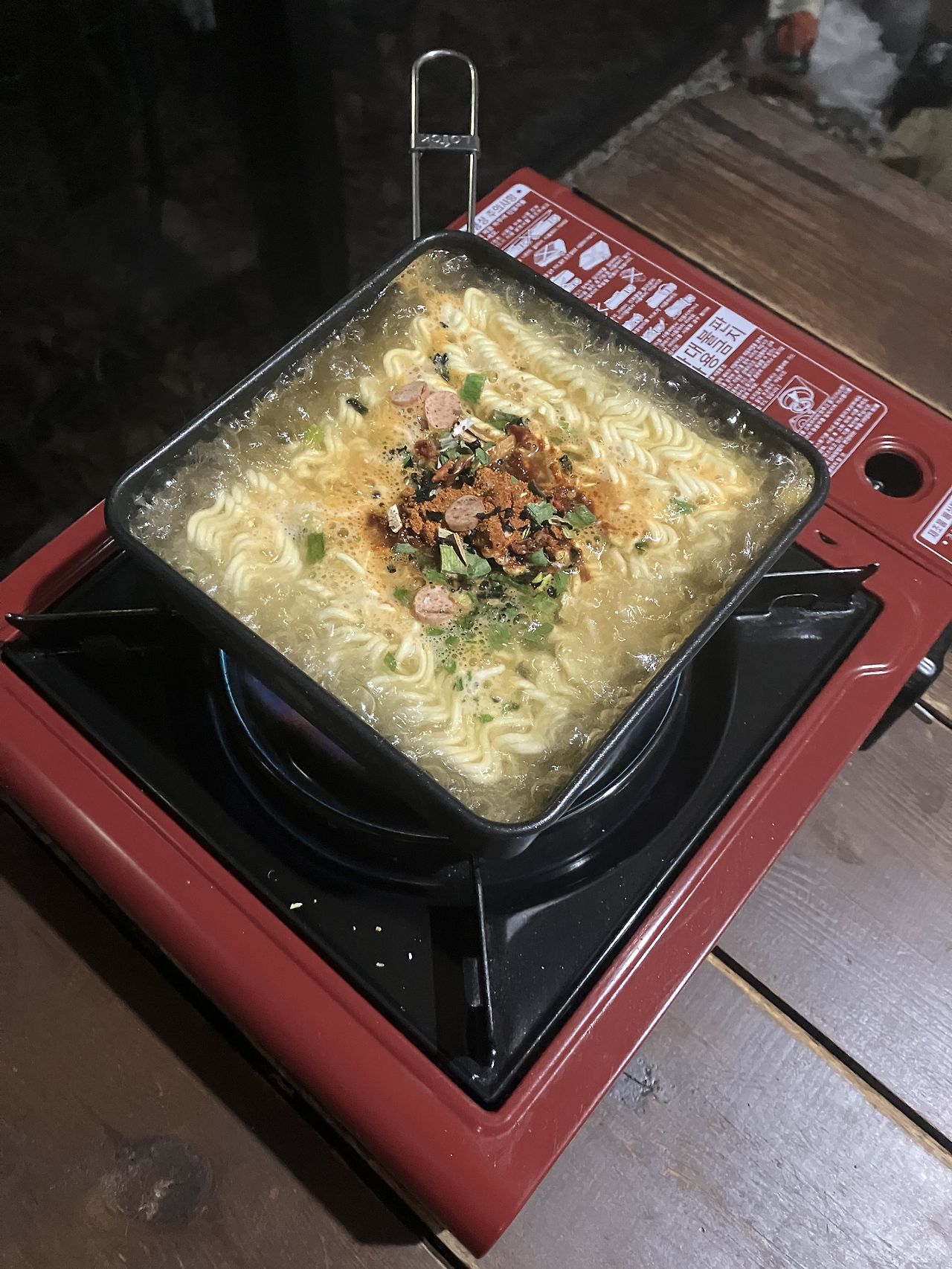 캠핑에서 내가 기대하는 것이라면, 차가운 밤바람과 나무타는 냄새와 소리, 숯불에 맛있게 익어가는 고기와 차가운 날씨에 꼬들하게 익힌 라면과 얼큰한 국물, 그리고 정취있는 음악과 술, 딱 그정도다. 주변에 어떤 관광지가 있는지, 가는 길에 들릴만한 코스는 어떠한지, 맛집이 있는지 없는지는 그다지 중요하지 않다. 최대한 쉽게 캠핑장에 도착하고, 즐거운 경험을 나누고, 다음날 아침 해장라면까지 끓여 먹고 나오면 그날 만큼은 누구도 부럽지 않다.