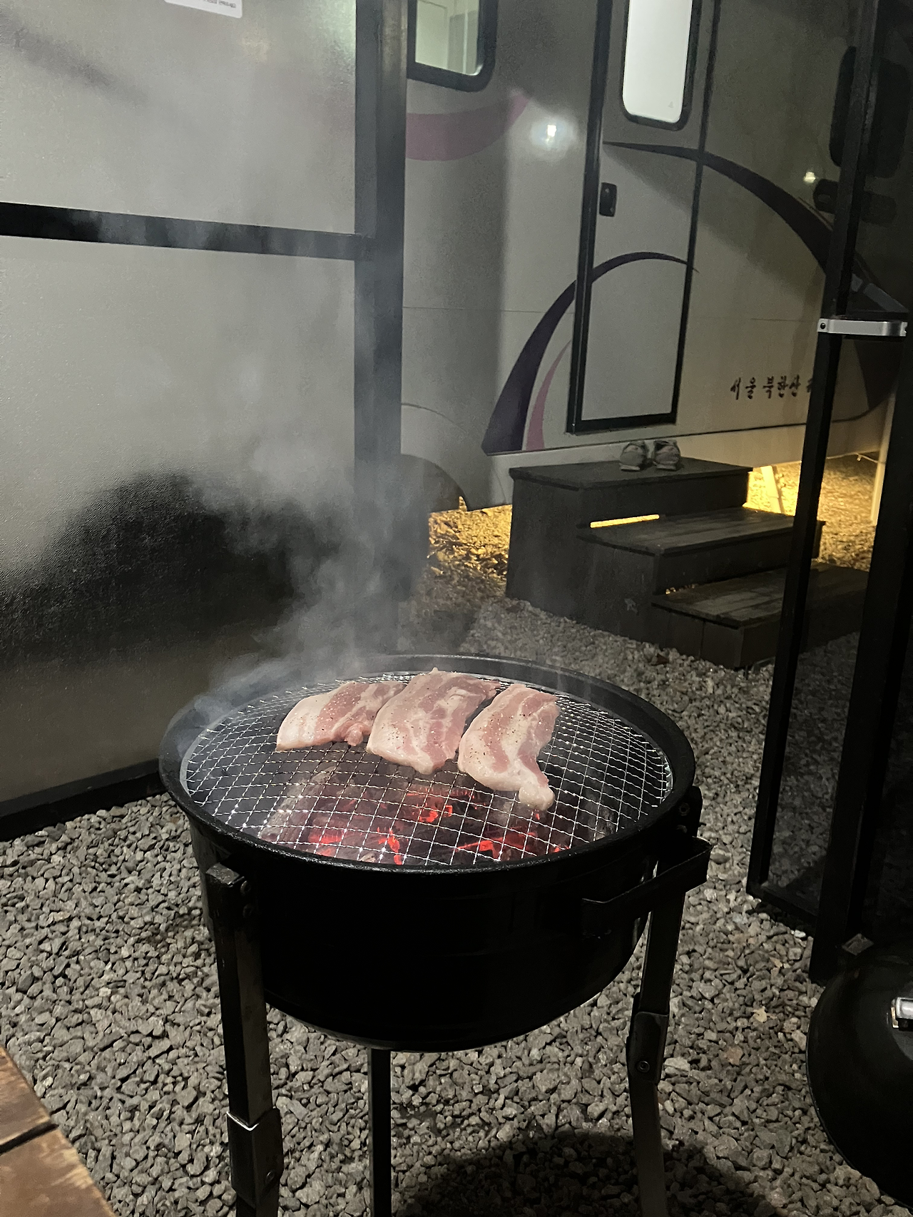 시스템이 잘 되어 있다고 이번에 한번 더 느꼈던 건, 캠핑장 도착 후 예약자 성함을 확인하는 과정에서 내가 몇번이나 재방문한 고객이라는 것을 기록을 통해 확인한 후, 그에 따른 보상으로 저녁에 피울 숯을 공짜로 서비스해줌과 동시에 더 크고 넓은 카라반으로 업그레이드해준 점때문이다. 예상 못한 환대에 감동받은 남편과 나는 앞으로도 쭉 이곳을 애용하기로 마음 먹었다.