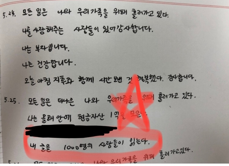 매일 감사한 일을 기록하고, 내가 원하는 미래의 모습을 적어가는 것이었다.