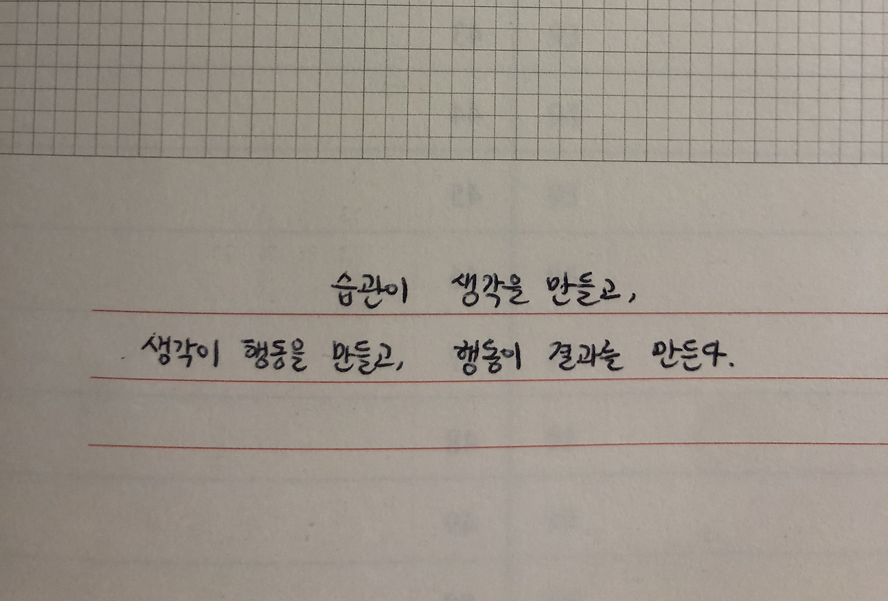 ‘습관이 생각을 만들고, 생각이 행동을 만들고, 행동이 결과를 만든다.’ 이다.