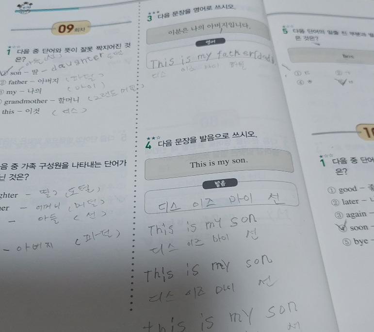 당신이 공부한 공책을 찍어 보냈는데 아빠가 아직 말이 없다며