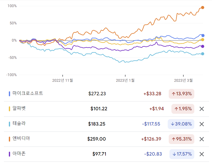 인공지능 학습에 필수적인 GPU(그래픽카드) 제조 기업으로, 모든 AI 관련 기업과 연관이 있는 기업입니다. GPU를 활용한 병렬 연산으로 딥러닝 모델에 필요한 학습 시간을 기하급수적으로 감축할 수 있는데, OpenAI가 학습시킨 모델을 사용자의 필요에 맞게 미세 조정하는 개별화된 데이터 모델 학습을 위해 GPU의 수요가 급증할 것으로 예측됩니다. Stability AI에서 배포한 오픈소스 라이선스로 배포한 Stable Diffusion을 시작으로, 자연어를 넘어선 이미지 생성 AI 시장에서도 수요가 발생하고 있습니다.