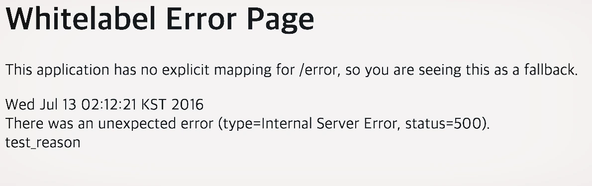 # 안 본다고(false) 설정하면 기본 서블릿 컨테이너 에러 화면을 보게 된다.