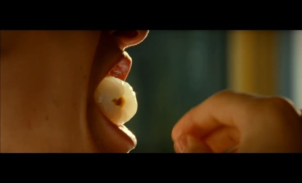 영화는 케빈이 음식을 먹는 장면을 대화 사이에 빈번하게 삽입한다. 이러한 장면들은 스토리 전개와는 큰 상관이 없지만, 장면의 분위기와 캐릭터를 표현하는 데에 중요한 역할을 한다. 특히 식사 자리에서 과일을 먹는 장면이 그러하다. 위 장면은 단순히 과일을 먹는 상황이지만, 케빈이 과즙을 튀기며 과일 리치를 먹는 장면은 잔인하게 보이기까지 한다. 이는 그가 동생 실리아의 한쪽 눈을 의도적으로 실명시킨 정황과 눈알 모양의 과일을 먹는 모습이 연결되며, 잔혹성이라는 이미지를 만들어냈기 때문이다. 영화는 이와 같이 장면의 중간에 음식을 배치함으로써, 케빈의 잔혹성을 이미지화한다.