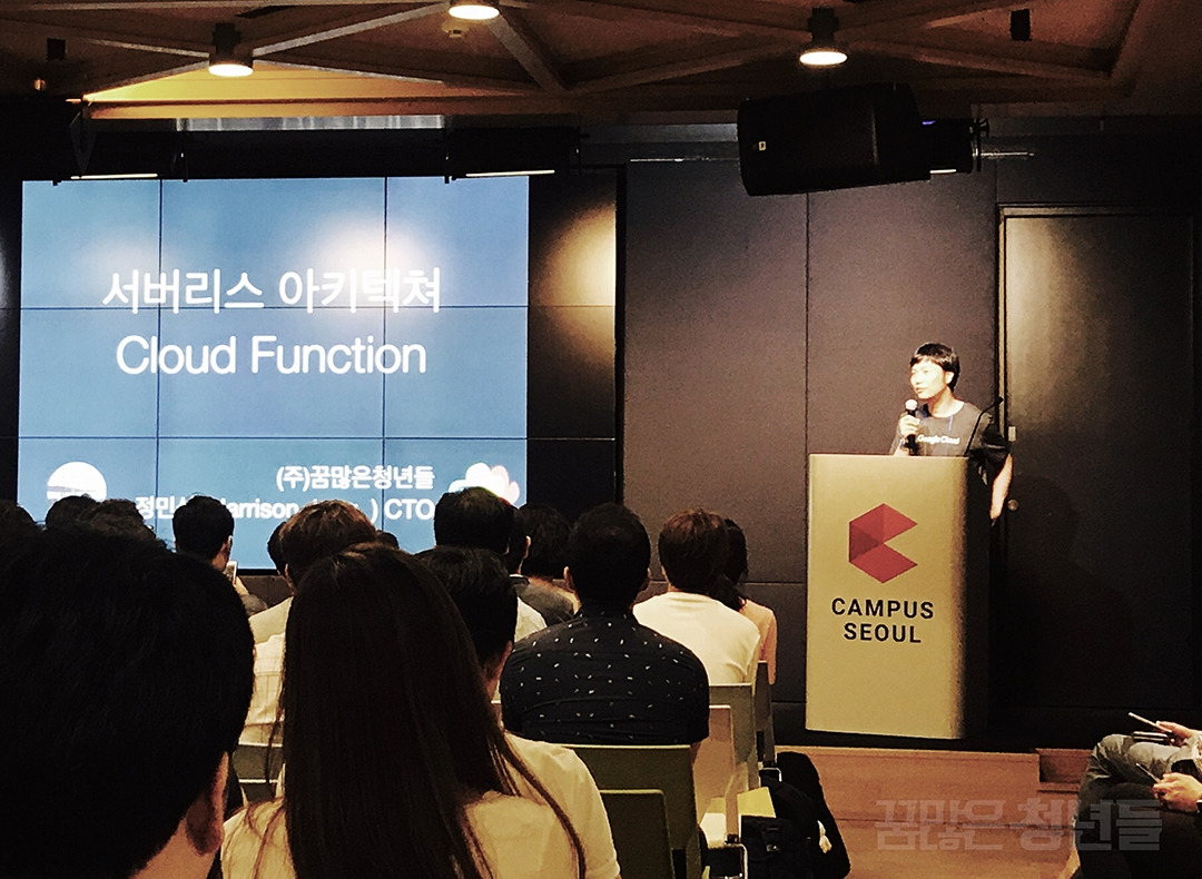 구글에서 컨퍼런스 발표를 하고 계시는 꿈청의 CTO 님.