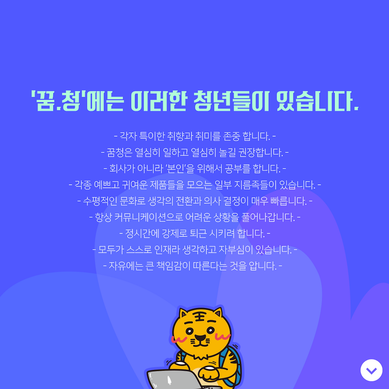 왜 '꿈.청' 일까요? '꿈많은청년들' 은 이름 그대로의 기업 입니다.