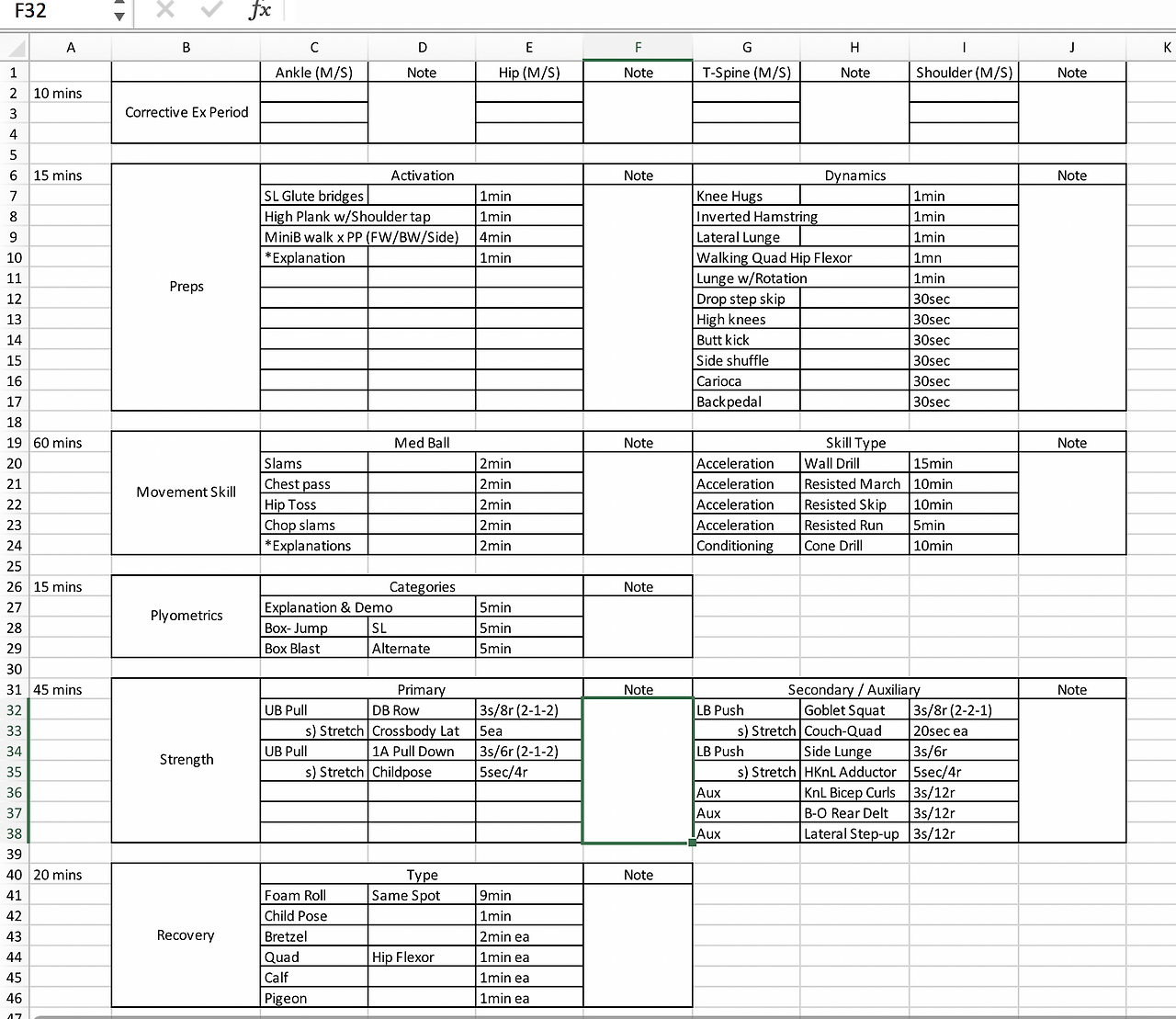 언제 무엇을 위해 훈련을 진행해야 할지에 대한 계획이 세워졌다면, 마지막으로 하는일이 바로 운동의 선택 (Exercise Selection) 이다. 운동을 선택하는 기준에 대해서는 향후에 더 이야기를 나누겠지만, 일반적으로는 교정운동, 준비운동, 움직임의 기술, 움직임의 타입, 회복운동 등으로 종류를 나눌수 있겠다. 운동을 선택한 이후에는 그때그때 세부적인 조정 (Micro Adjustment) 을 위해서 운동의 강도, 빈도, 그리고 양을 조절하며, 최후 수정이 이루어 질 수 있다. 일반적인 시각으로 위에 있는 프로그램의 예를 보았을때, “나는 운동에 하루 두세시간씩 할애할 시간이 없다”, “저 많은 양을 모두 트레이너에게 배우려면 얼마가 들겠느냐” 라고 질문 할 수 있을것 같다. 그리고, 직업이 운동이 아닌이상 나 또한 충분히 이해할 수 있는 부분이다. 그럴때 우리는 우선순위를 설정 (Prioritization) 하여 가장 필요한 것 위주로 채워가야 하고, 나의 프로그램에 대해서 학습하고, 조금씩 스스로의 프로그램에 대해서 전문가가 되어, 자기 시간에 반복 실습하며, 지식과 경험을 쌓아 가는것이 필요하다.